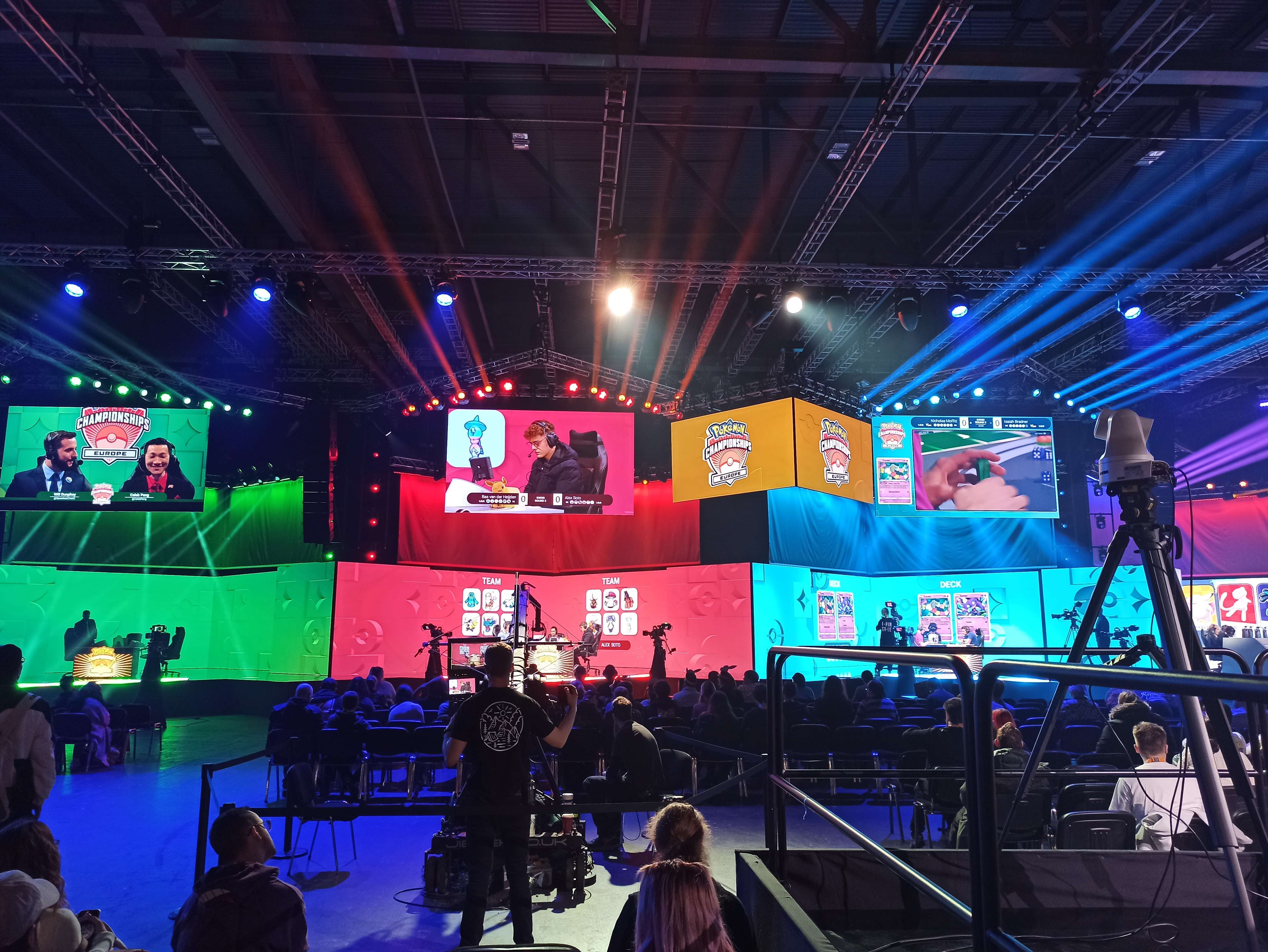 De grote podia waarop voor de grote titels gestreden wordt, zijn vanuit de hele zaal en tijdens ieder ‘side-event’ in de gaten te houden. Pokémon GO, Scarlet en Violet, Trading Card Game en UNITE hebben ieder hun eigen podium waarop wedstrijden gespeeld worden. Op zaterdag vinden de finales van Pokémon UNITE plaats, waar de Talibobo Believers het team Nouns Esports met een ongelooflijk klein verschil verslaan, waarop het publiek volledig uit zijn dak gaat. Ook bij de Pokémon GO-, en de Scarlet- en Violet-finales op zondag zit de sfeer er goed in. Een grote mensenmassa bevindt zich op de stoelen voor de podia om de spelers toe te juichen, onder meer voor de Belg Rune Heiremans die in Senior Divisie TCG de eerste plek veroverde. De grote opkomst van publiek op de International Championships laat zien hoe groot Pokémon op het competitieve vlak nog steeds is.