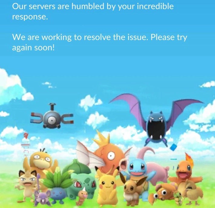 Dit bericht wijst er op dat de Pokémon Go servers down zijn, waarschijnlijk ten gevolge van overbelasting. Niantic heeft beloofd om de servercapaciteit uit te breiden, maar door de enorme populariteit van Pokémon Go blijven de servers moeilijkheden ondervinden. Je hebt jammer genoeg geen andere keuze dan te wachten totdat de servers terug up zijn.