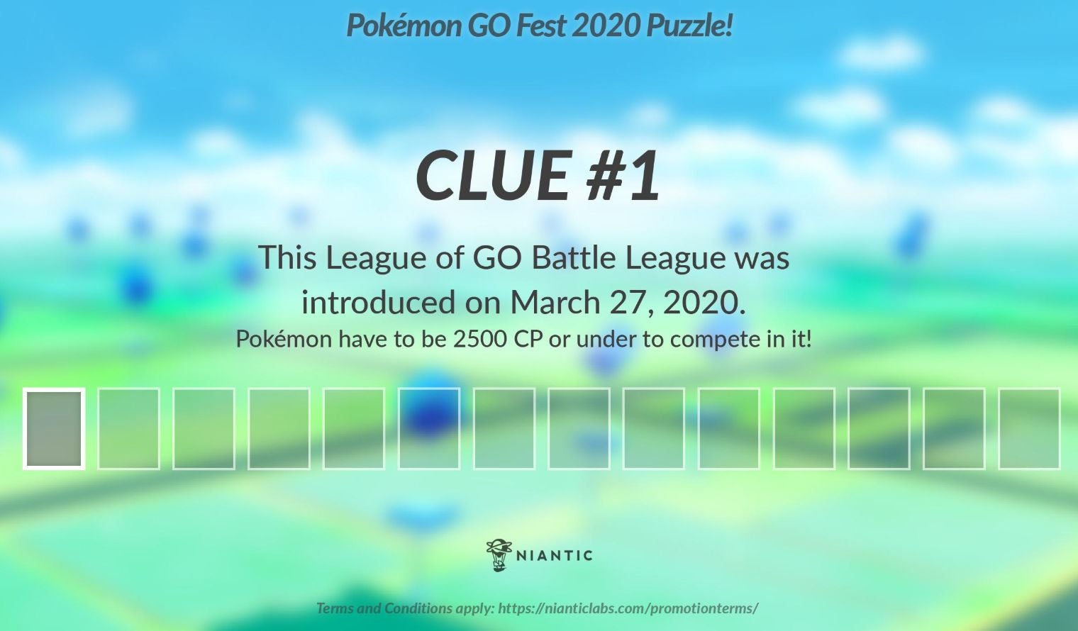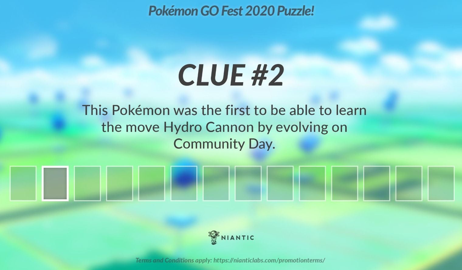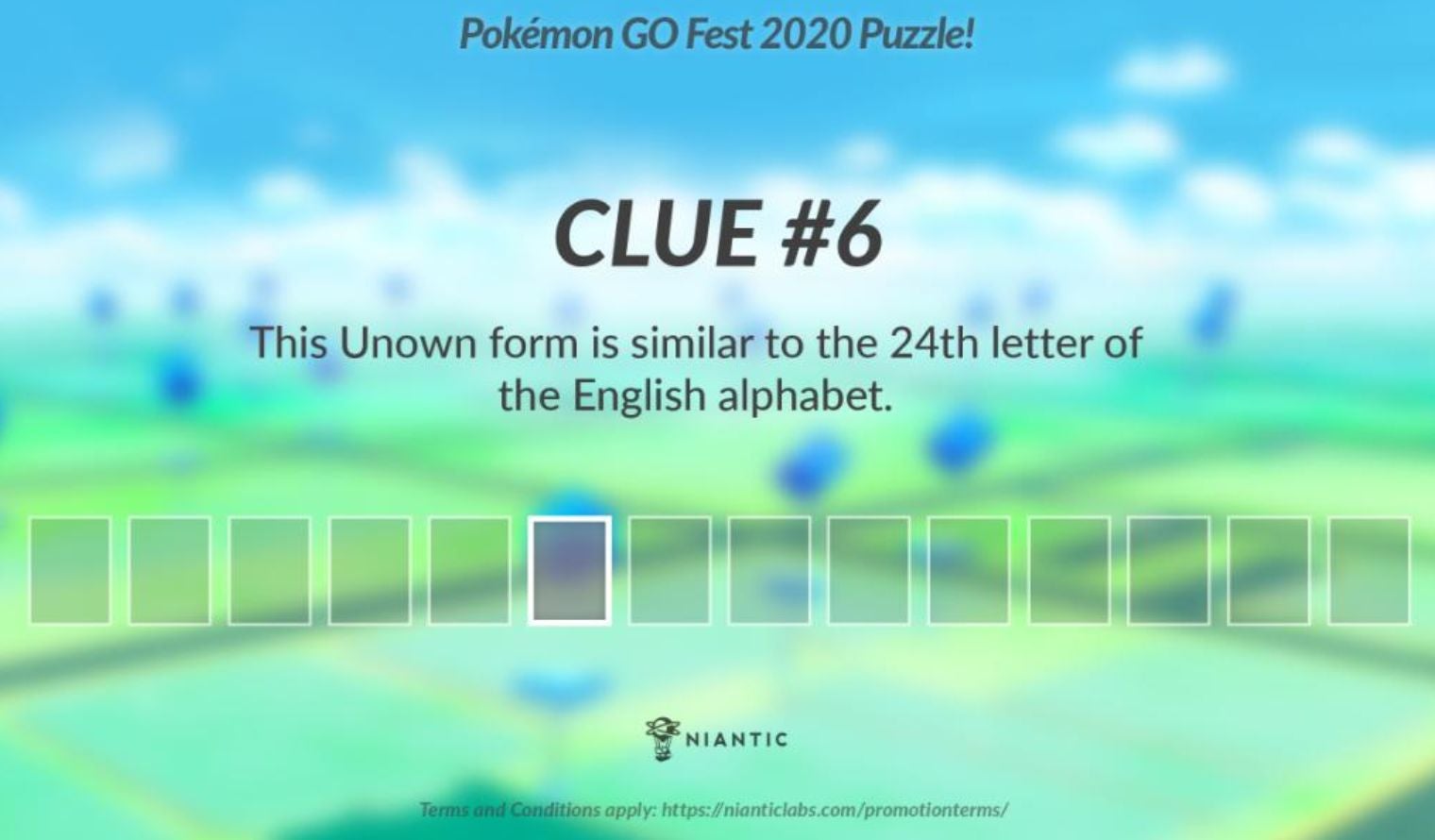 De Pokémon Go Fest 2020 puzzel bestaat uit 13 aanwijzingen die gegeven werden tussen donderdag 16 juli en woensdag 22 juli .