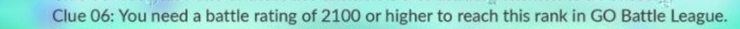 Hint 6: 'Je hebt een battle rating van 2100 of hoger nodig om deze rank te bereiken in Go Battle League.'