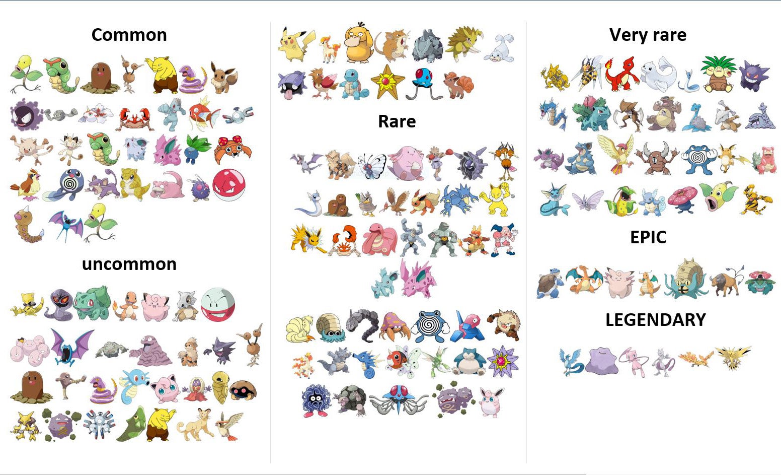 Momenteel zitten er Pokémon uit de eerste, tweede en derde generatie in de game. Echter zijn niet alle Pokémon direct te vangen, omdat ze bijvoorbeeld worden achtergehouden voor evenementen. Wil je weten welke Pokémon je kunt vangen, waar je ze kunt vinden en hoe zeldzaam ze zijn, lees je de volgende pagina's.