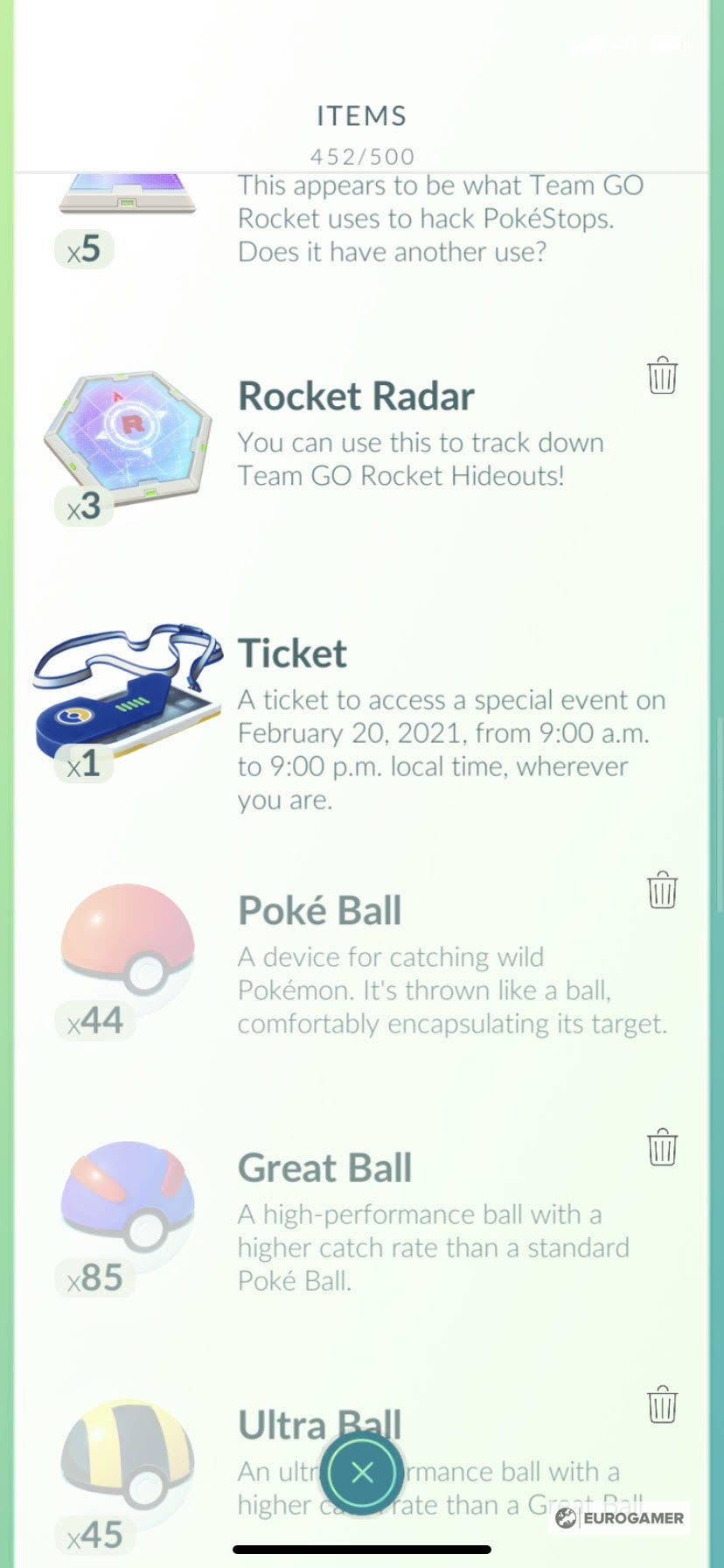 Wanneer je klaar bent met kiezen welke versie je wil spelen, en na het kopen van je ticket, zal je je Item Bag willen openen via het Pokémon Go hoofdmenu. Scroll naar beneden tot je je Pokémon Go Tour: Kanto ticket ziet en selecteer deze.