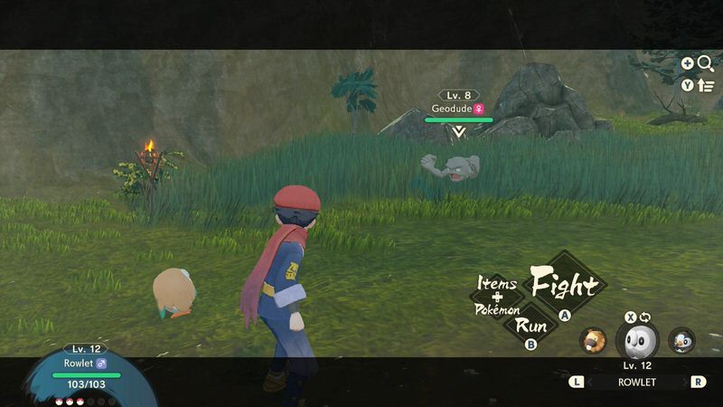 Die vrijheid zet door in hoe je Pokémon benadert en vangt. Er zijn volgzame, schichtige en agressieve Pokémon, die elk een andere aanpak vereisen. Voor schichtige Pokémon moet je voorzichtig door het gras sluipen en ze met wat eten lokken voordat je ze kunt benaderen, de volgzame zijn vrijwel zonder hulpmiddelen te vangen en de agressieve willen meteen vechten als ze je zien. Vanuit het hoge gras of op een heuvel een nietsvermoedende Pokémon vangen, verveelt simpelweg niet. Natuurlijk kun je elke Pokémon ook traditiegetrouw aanvallen en ze vangen wanneer hun HP laag is. Het feit dat je eindelijk keuze hebt in hoe je Pokémon vangt, maakt de game over de hele linie meer gevarieerd en zorgt dat je logischer omgaat met de grote diversiteit aan monsters. Het zijn broodnodige aanpassingen voor de conservatieve reeks.