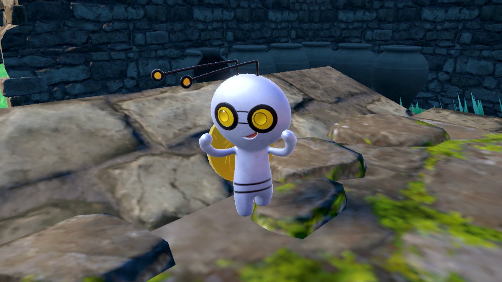 Gimmighoul is een kleine munt die een chest form en roaming form heeft. Zoals de naam doet vermoeden, vind je hem in zijn chest form terug in een schatkist met speciale gouden munten.