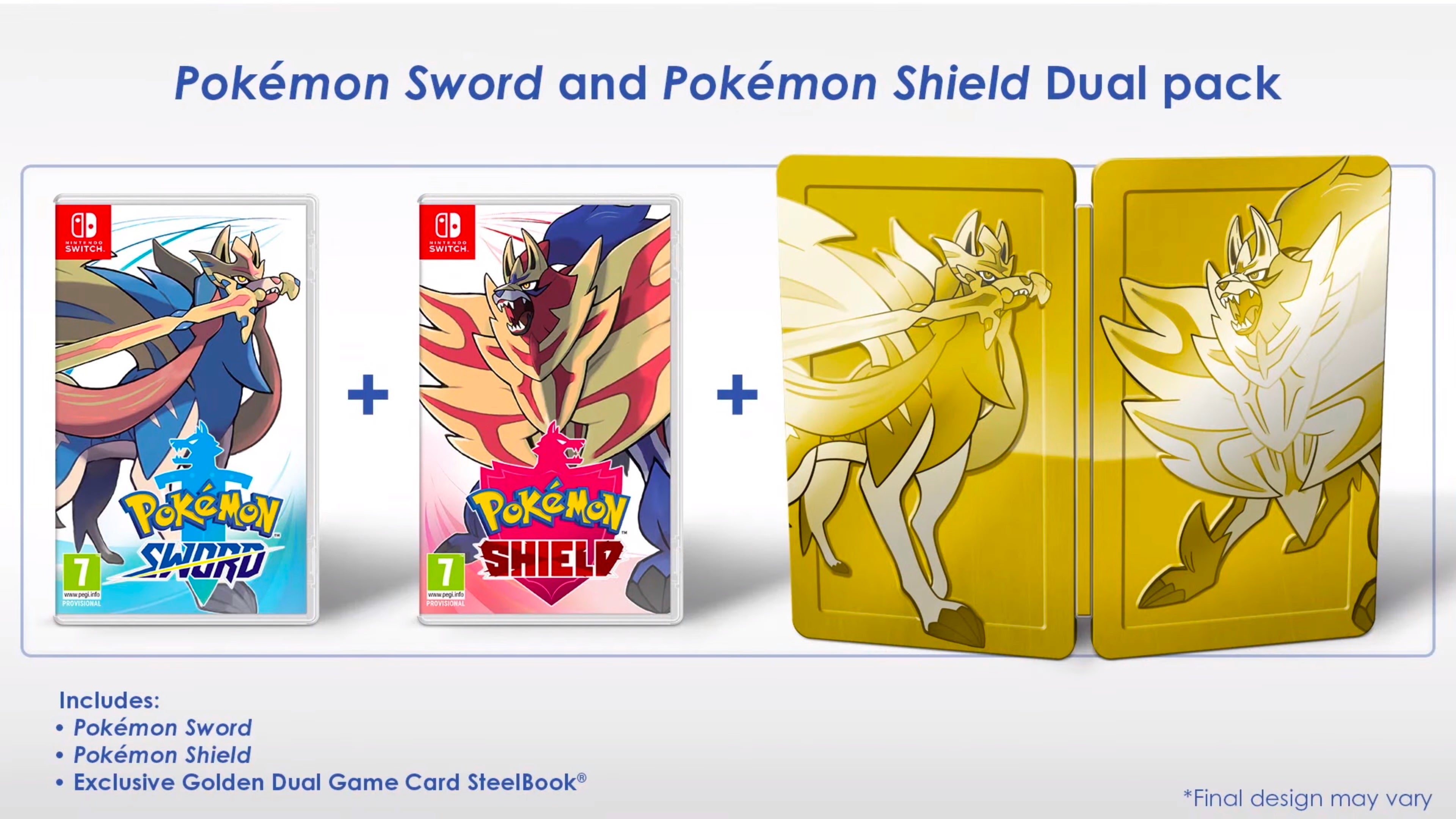 Of je kiest voor de Pokémon Sword en Shield Double Pack. Die bevat beide games en kost evenveel als je beide los zou kopen, maar heeft daarnaast een gouden steelbook-doosje als extra. Hier passen beide cartridges in.
