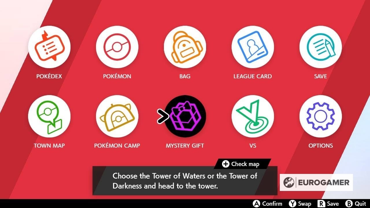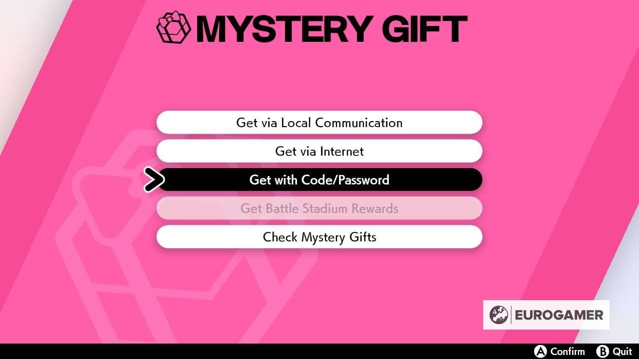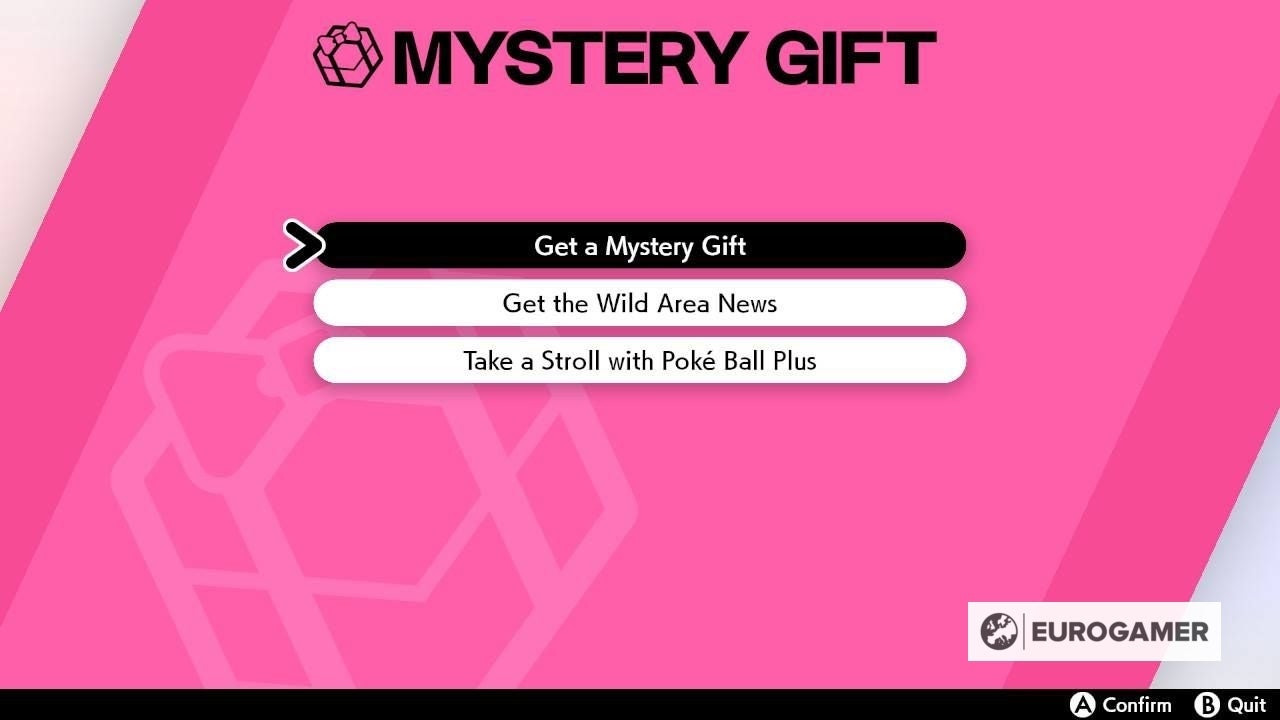 - In het menu moet je de optie 'Mystery Gift' selecteren.