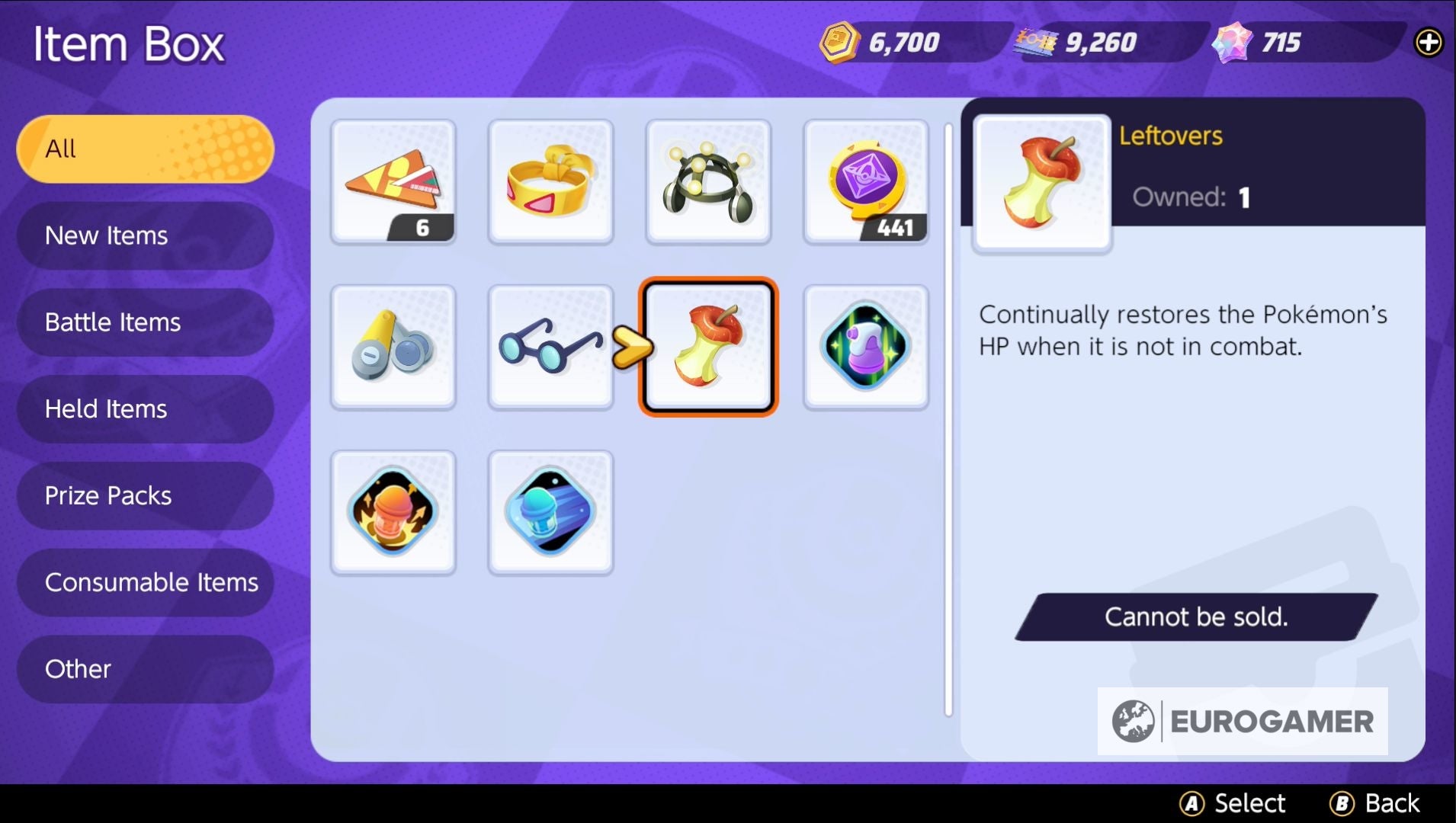 Voor een healing item raden we je aan om Leftovers of een Shell Bell te kiezen. Het verschil is dat de Leftovers de gezondheid buiten gevechten herstelt, terwijl Shell Bell de gezondheid herstelt als je iemand raakt, dus je voorkeur hangt af van je speelstijl.