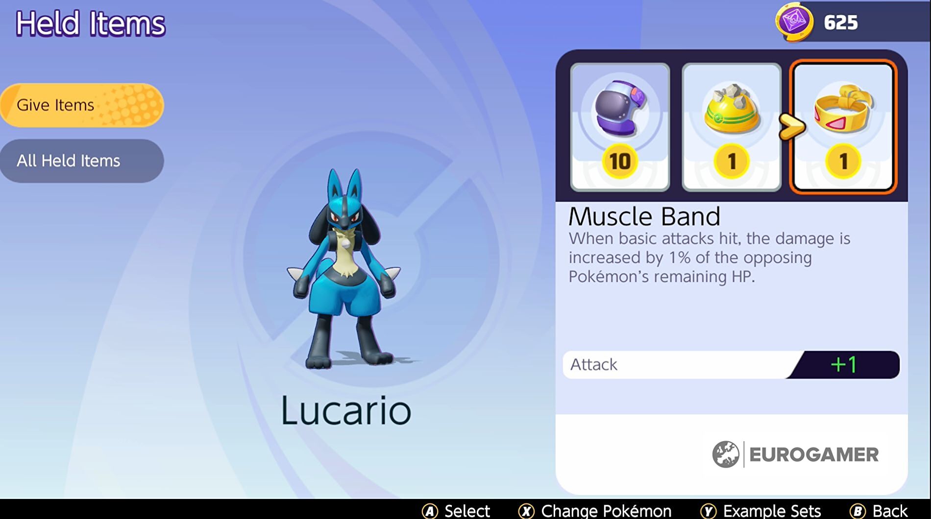 We raden je aan om Lucario tenminste twee op attack-gebaseerde items te geven, zodat je er zeker van bent dat hij zoveel mogelijk damage doet.