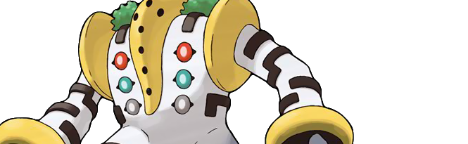 Regigigas, the Colossal Pokémon, is degene die Regirock, Registeel en Regice in elkaar puzzelde. Hij had nog meer steensoorten tot leven kunnen wekken, maar de mensheid werd bang van deze immens krachtige legendary en borg hem en zijn creaties op in aparte, diepe grotten in de hoop dat ze zouden worden vergeten. Het eeuwenoude slot zorgt ervoor dat Regigigas in een versteende staat blijft tot hij wordt herenigd met zijn drie kindjes. Wie er in slaagt om de kolos wakker te maken, bereidt zich best goed voor. Door zijn ochtendhumeur begint de gigant namelijk meteen verwoestende Hyper Beams in het rond te schieten. Als je hem echter weet te bevrienden, is Regigigas (blijkbaar) een echt lieverdje.