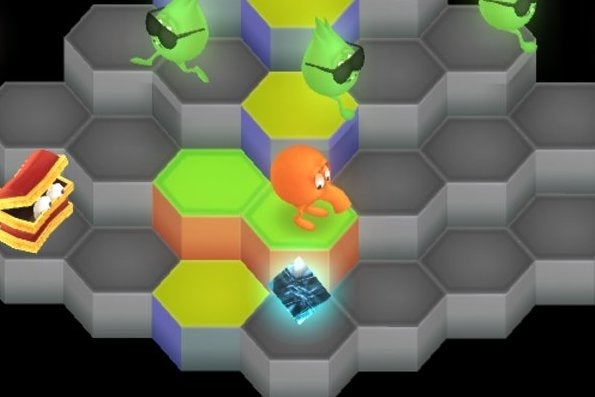 Q*bert is zowel een puzzelgame als een platformgame, waarin je diagonaal over het speelveld springt om ieder vakje dezelfde kleur te geven. Onderweg mag je niet geraakt worden door tegenstanders of van de toren vallen.