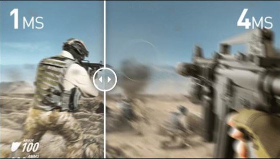 Daarom is het extreem belangrijk dat je een gaming monitor hebt met een lage responstijd - en wat dat betreft leidt MSI op dit moment de industrie. Laat ons even duiden waarom we dat precies zeggen. Voor tv’s ligt de responstijd vaak rond de 18 milliseconde (ms). Als je een 120 Hz modus activeert, dan tuimelt dat vaak naar 8 ms. Voor gaming monitors is de responstijd vaak veel sneller. Zelfs een mid-range gaming monitor heeft vaak een responstijd tussen de 5 en 2 ms.