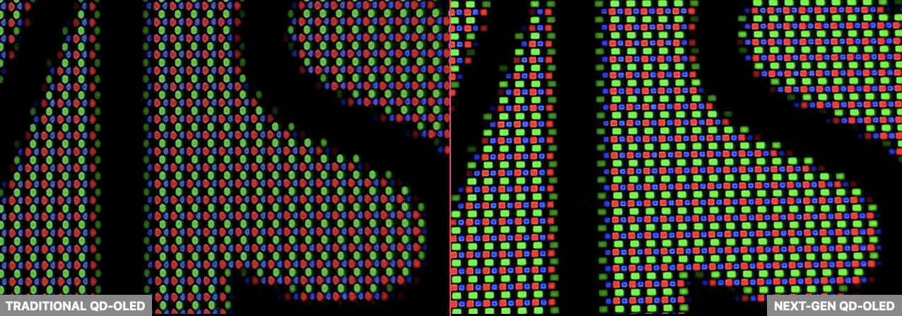 Maar er zijn ook enkele nadelen verbonden aan QD-OLED, specifiek wat betreft gaming. Gebruikers van OLED schermen hebben in het verleden namelijk al geklaagd over tekst die er vreemd uit ziet. Dat komt door de pixelstructuur die bij deze technologie wordt gebruikt. RGB subpixels worden namelijk in een driehoek gearrangeerd in plaats van de traditionele streep bij andere schermen.