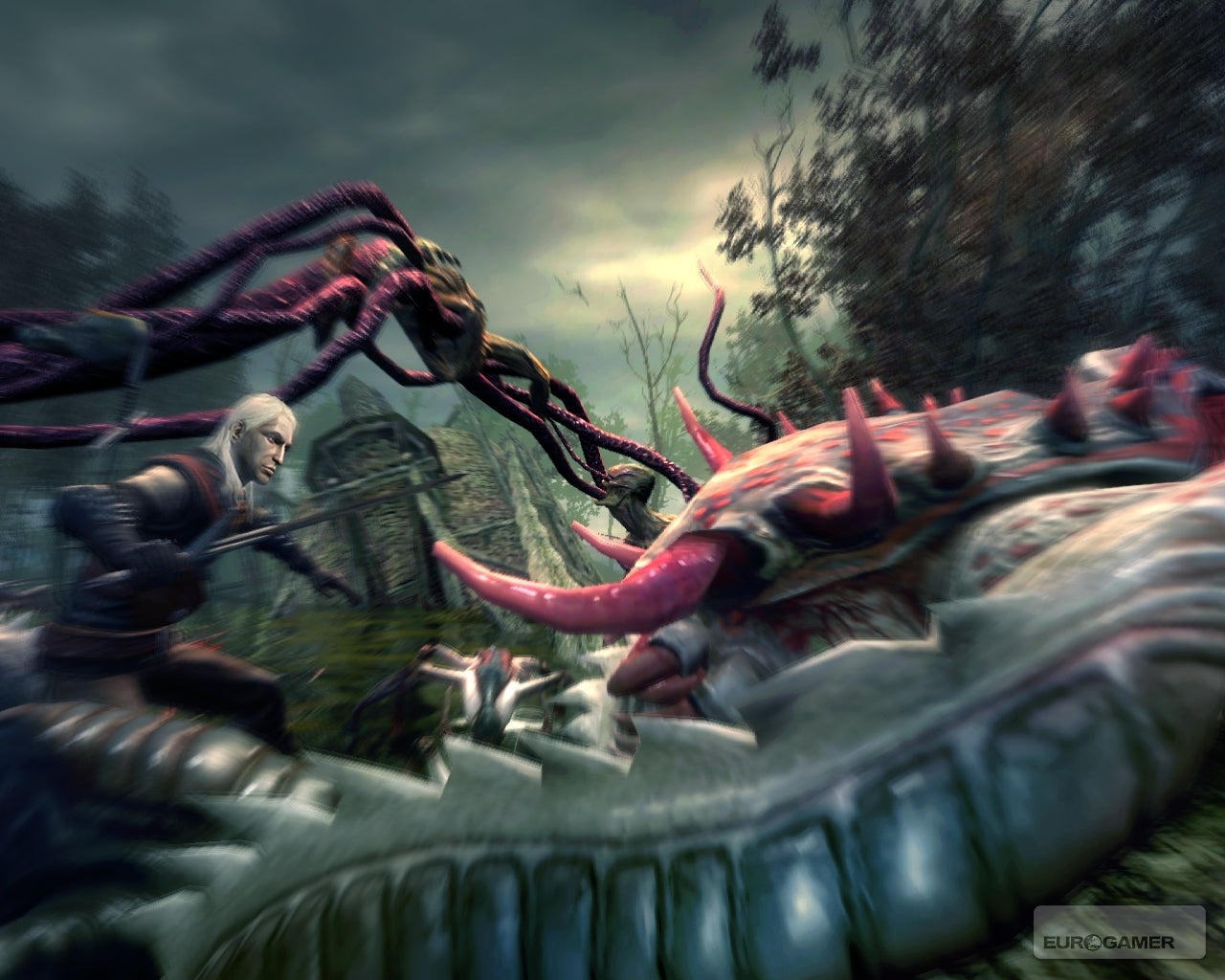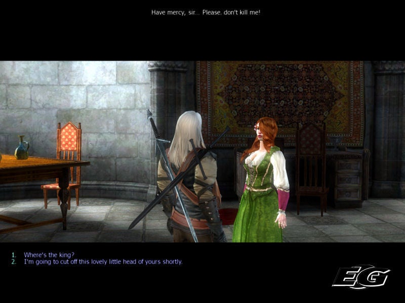 Geralt of Rivia, één van de laatst overgebleven Witchers, de monsterjagers met bovennatuurlijke krachten. Veel tijd voor praatjes is er niet want meteen laten we ons zwaard de dans der staal doen. Geralt krijgt de taak om de koning zijn, hoe kan het ook anders, bevallige dochter te genezen van een vloek om zo de speler te introduceren in de wereld van The Witcher. Al snel merk je op dat het spel stevig leunt op het gebruik van tussenfilmpjes en dialoog. Dit dompelt de speler meteen onder in de sfeer en helpt je het spel te ervaren alsof het een film is. Een best gewelddadige film, maar dat even terzijde.