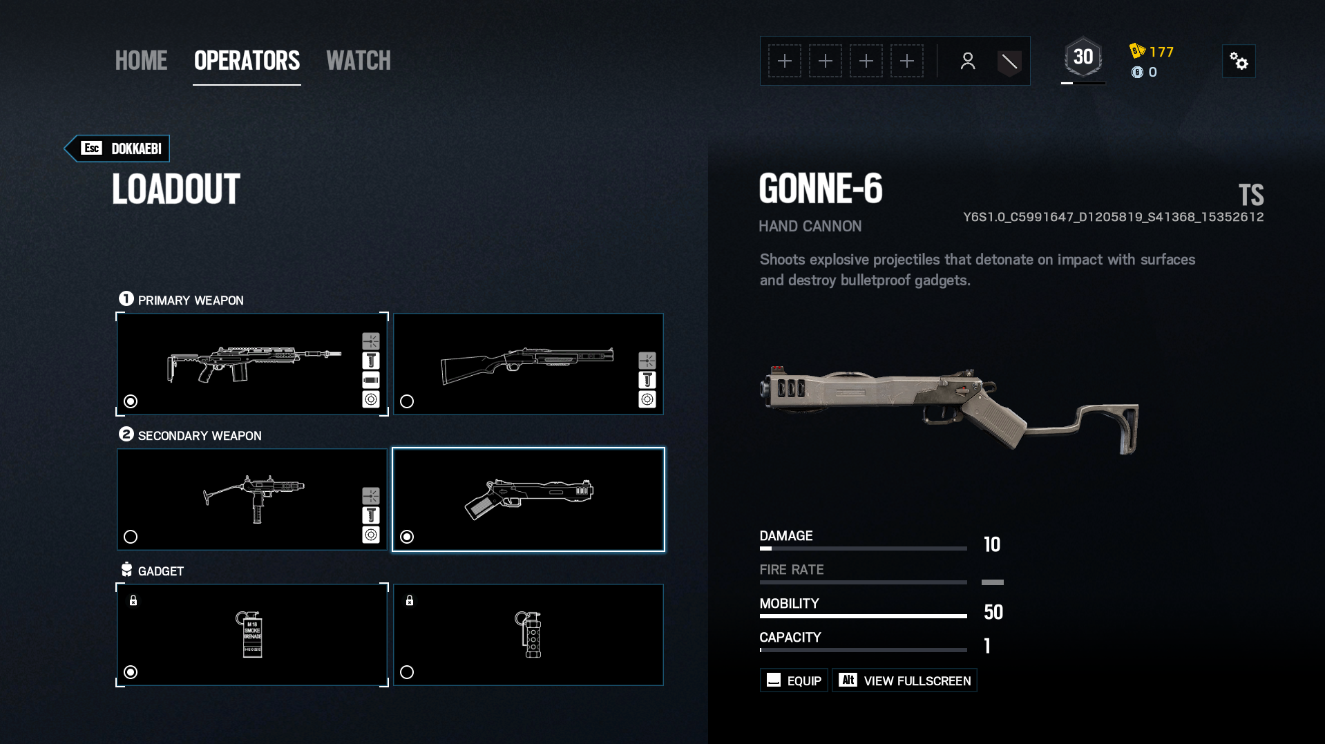 Op het vlak van wapens wordt binnenkort een nieuw type secundaire wapen gelanceerd, dat alvast op de testservers speelbaar is. De Gonne-6 is een hand cannon die veel wegheeft van Ash' Breaching Grounds, waarmee je een projectiel afschiet dat bij impact explodeert. Het is het snelle antwoord op breekbare muren, schilden en kogelvrije camera's die de weg versperren. De Gonne-6 beschikt echter over slechts één kogel en is daarnaast alleen voor Attackers weggelegd. Op het moment van schrijven zijn dat Glaz, Dokkaebi, Lion, Finka, Gridlock, Amaru, Iana en Zero, maar dat kan altijd nog veranderen.
