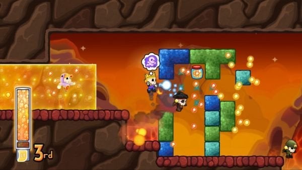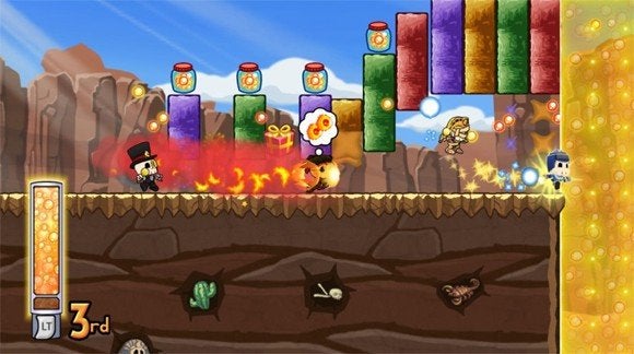 Nu we het trouwens toch over de motorsport hebben, een ander aspect dat Raskulls heeft overgenomen uit pakweg Mario Kart is de mogelijkheid om een random wapen te verkrijgen door een cadeautje op te pikken tijdens het racen. Deze pakjes bevatten onder andere een soort van laserstralen waardoor je je een rechtlijnige weg door alle soorten blokken kunt schieten, wapens waarmee je tegenstanders kunt elektrocuteren of hun boost kunt afnemen, en nog een aantal andere leuke extraatjes die het spel van een extra dimensie voorzien en de races spannend houden.