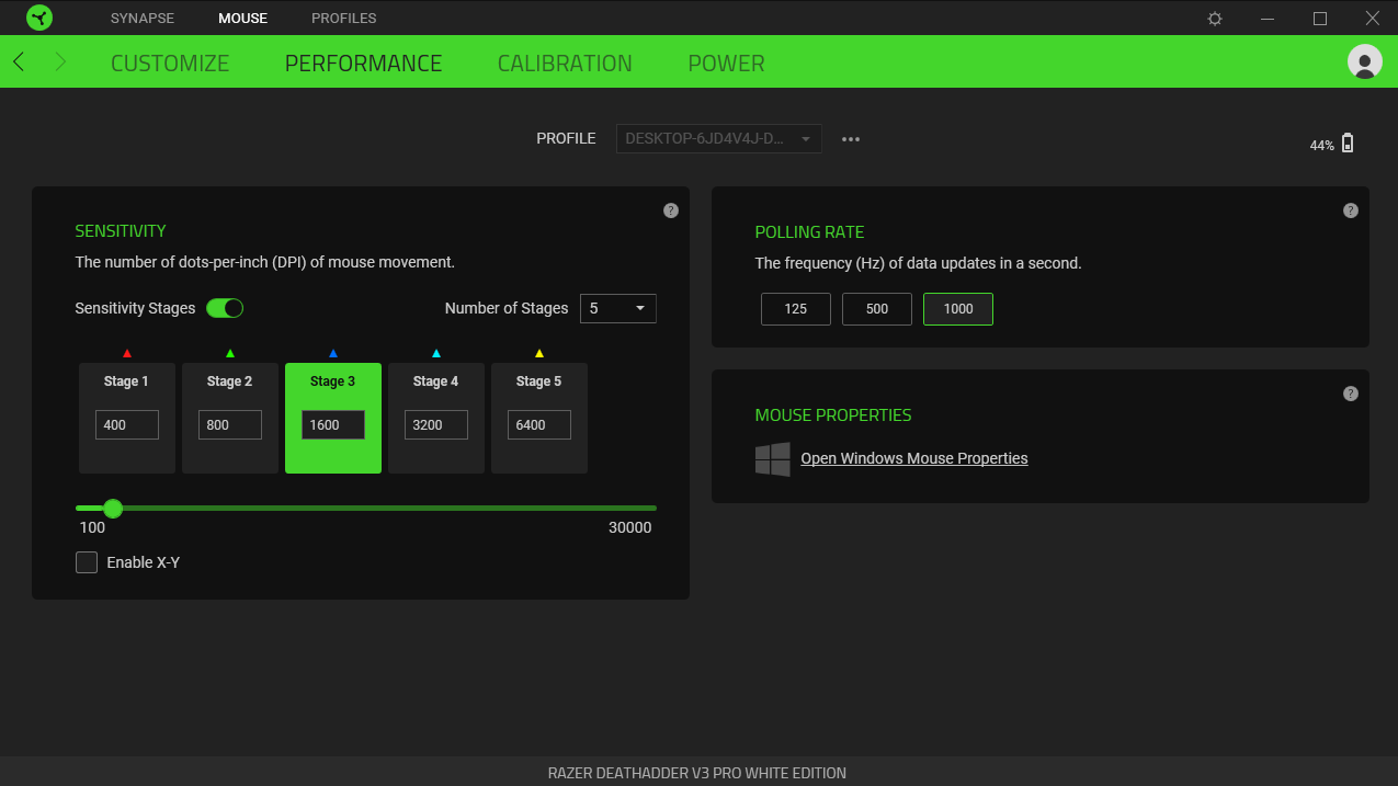 Met de aan-uitknop aan de onderkant van de DeathAdder V3 Pro schakel je tussen verschillende DPI-modi. Die stel je zelf in via de bekende Razer Synapse-software. Daarin beheer je eveneens andere snufjes, zoals kalibratie- en power-instellingen en de functies van de verschillende knoppen. Opnieuw ideaal voor wie de muis tot in detail wil afstellen voor de allerbeste prestaties. Bovendien is de Synapse-software gestroomlijnd en visueel aantrekkelijk.