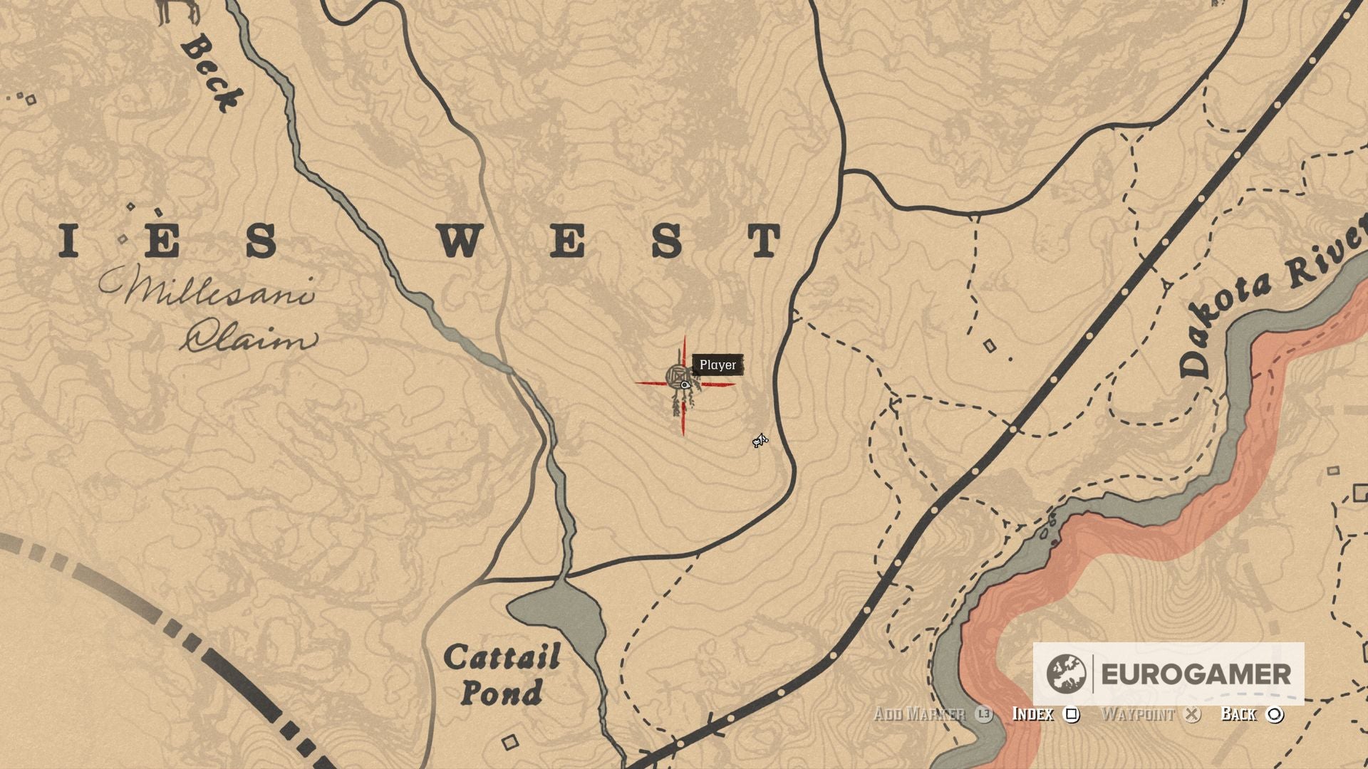 Deze Dreamcatcher staat op het puntje van de tweede letter N in Annesburg op de wereldmap. Het is relatief eenvoudig om daar te komen en deze Dreamcatcher te vinden. De dromenvanger is geïsoleerd ten opzichte van de andere bomen, wat betekent dat je deze gemakkelijk kunt vinden dankzij het getril van je controller.