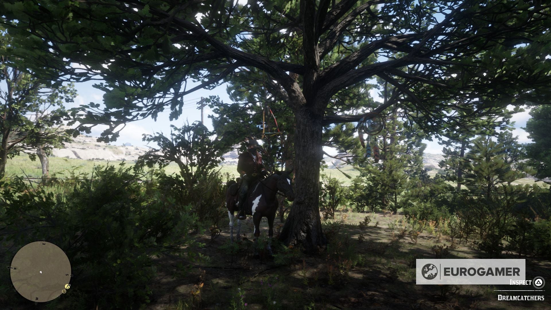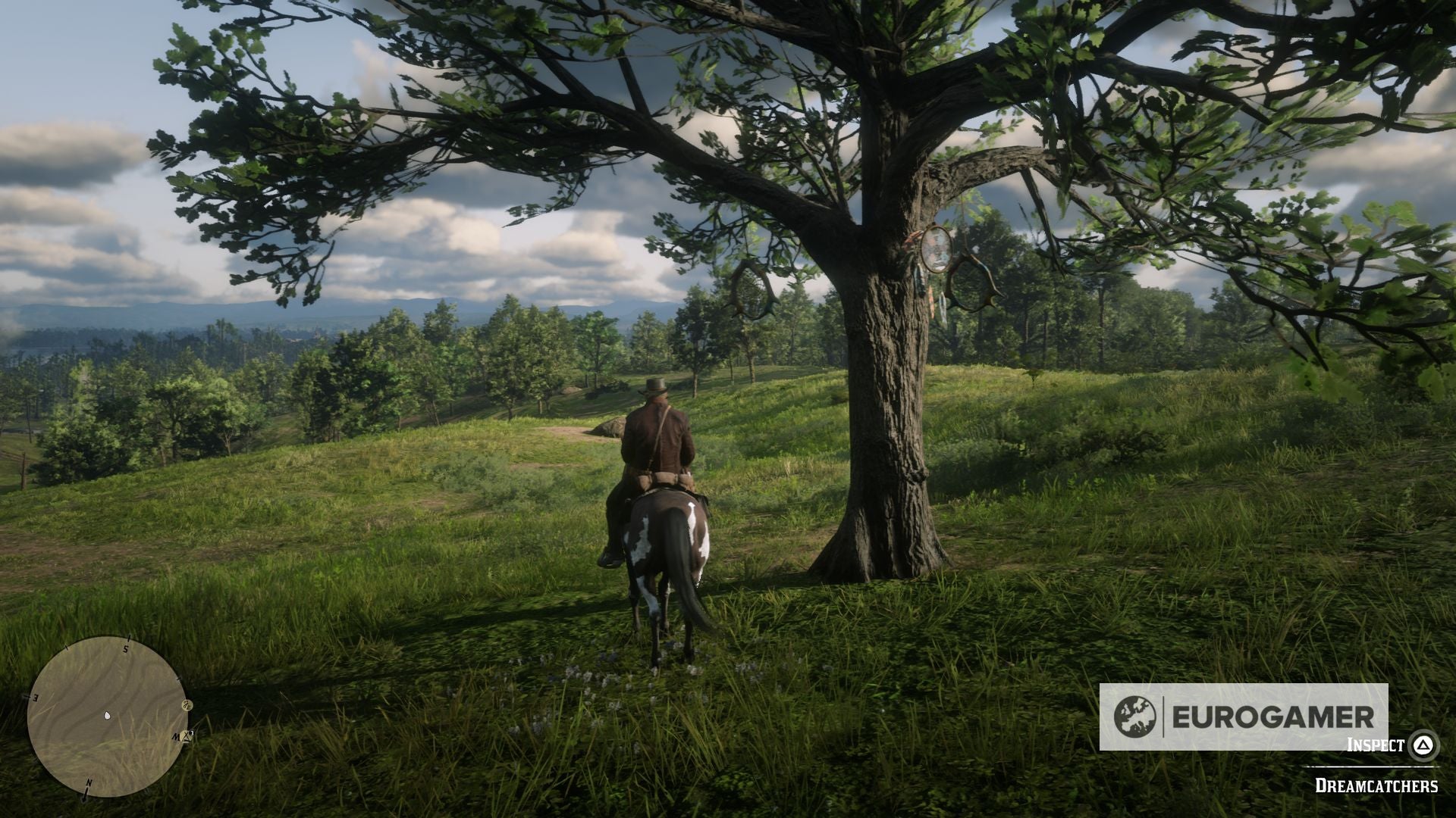 De volgende Dreamcatcher is een lastige gezien het aantal bomen op deze locatie. Check hoe dan ook het gebied in de binnenste ring van de letter O van New Hanover. Ga ietsje ten oosten van de binnenste ring. Gebruik Dead Eye om de juiste boom te vinden. Wanneer je controller trilt, is de dromenvanger binnen handbereik.