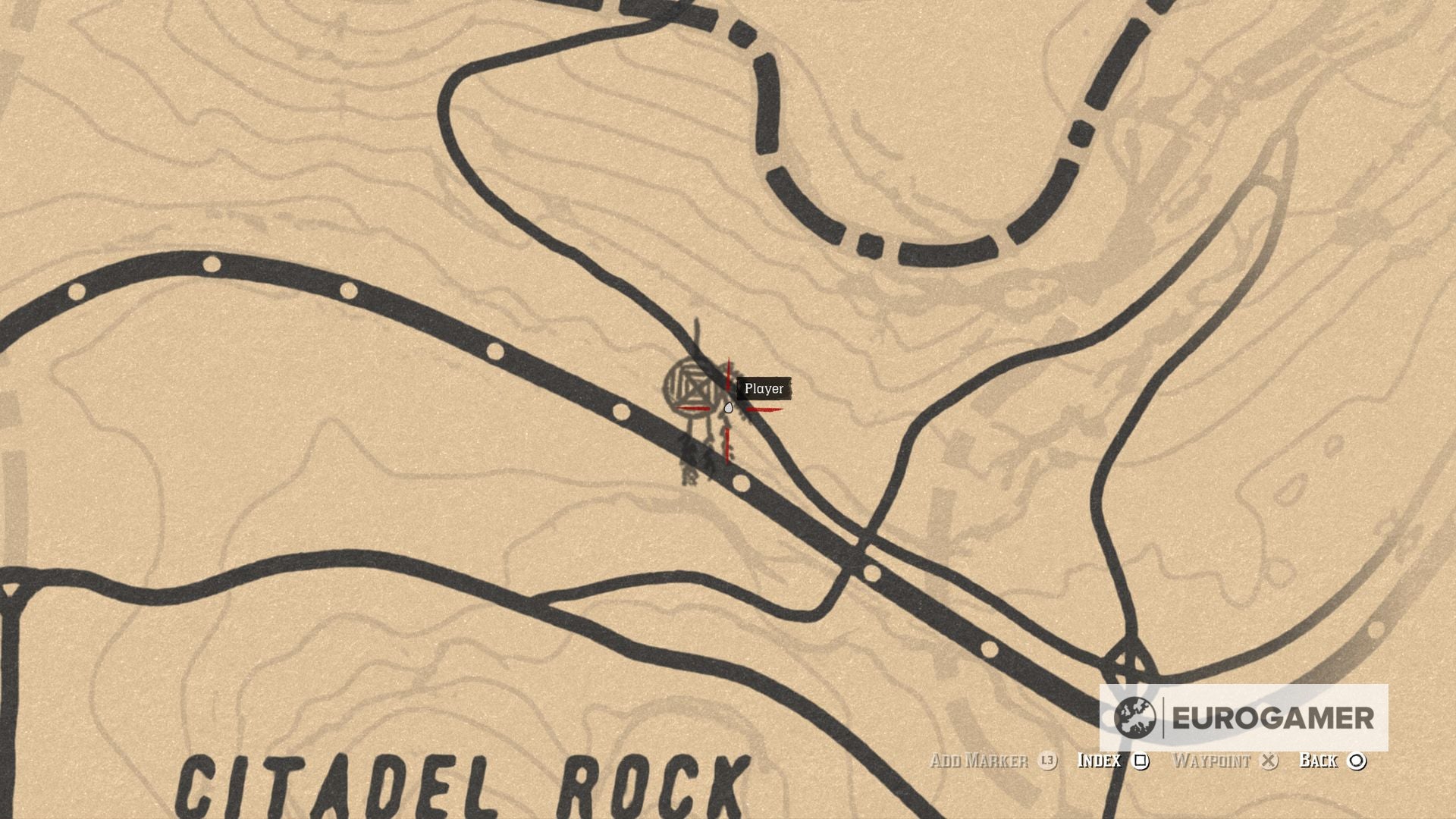Deze volgende Dreamcatcher vind je net ten oosten van Valentine. Ten noorden van waar Citadel Rock op de kaart is gemarkeerd, zijn er drie wegen; de eerste is kleiner, de tweede groter en de derde kleiner. Ga tussen de tweede en derde weg om deze Dreamcatcher te vinden, die net boven een bank naast een spoorweg ligt.