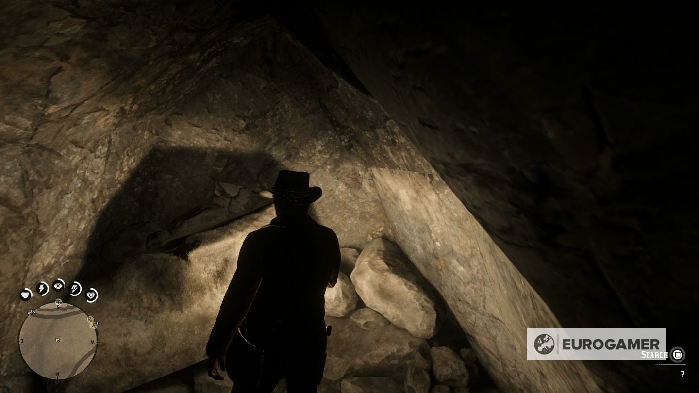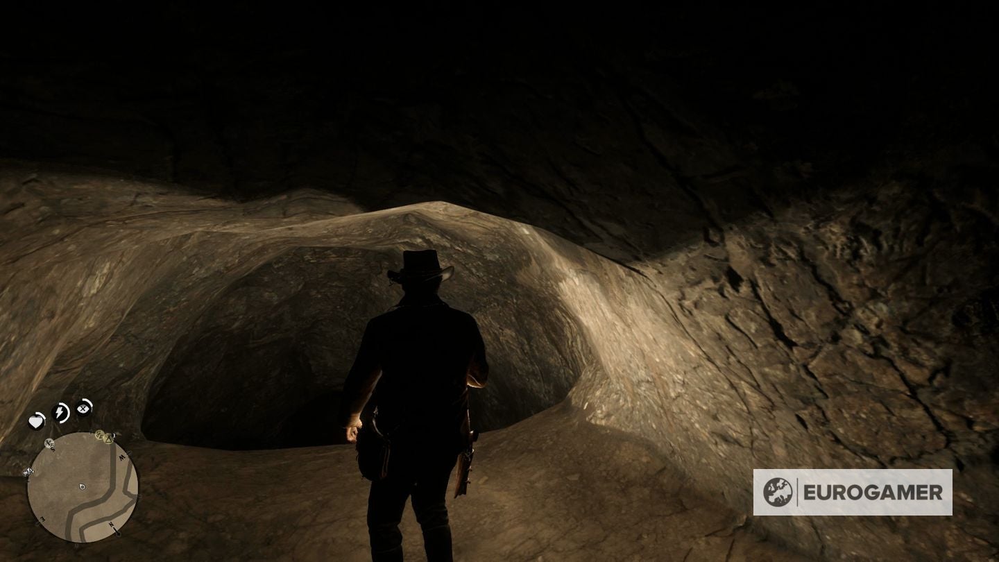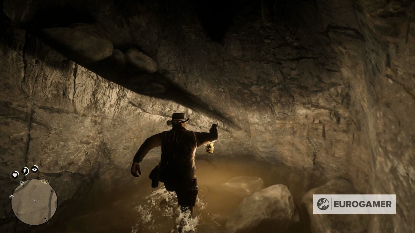 Eenmaal gevonden, maak je je paard vast aan een boom en ga je het water in. Zwem naar de waterval en ga er simpelweg door om toegang te krijgen tot de verborgen grot erachter.