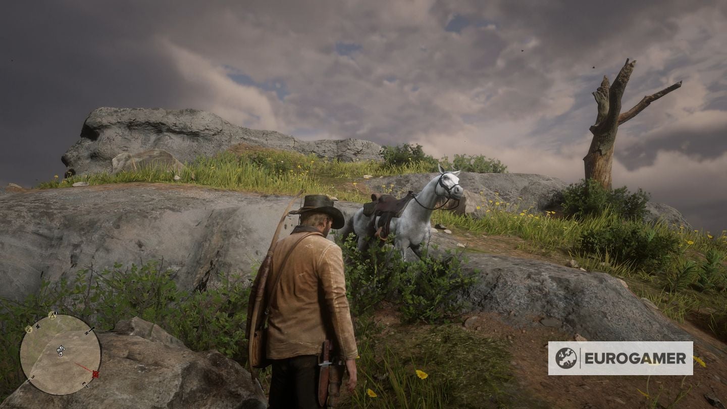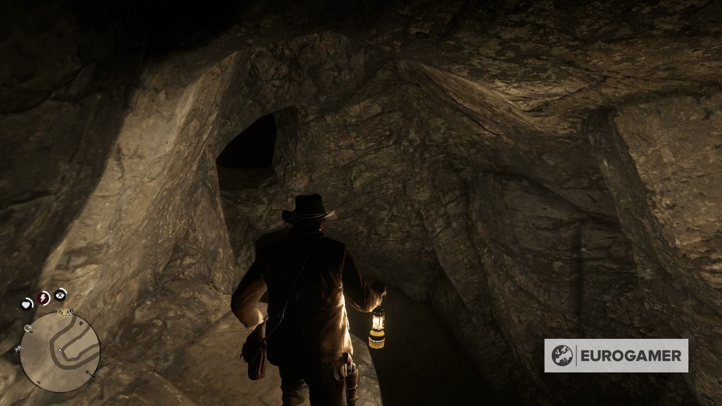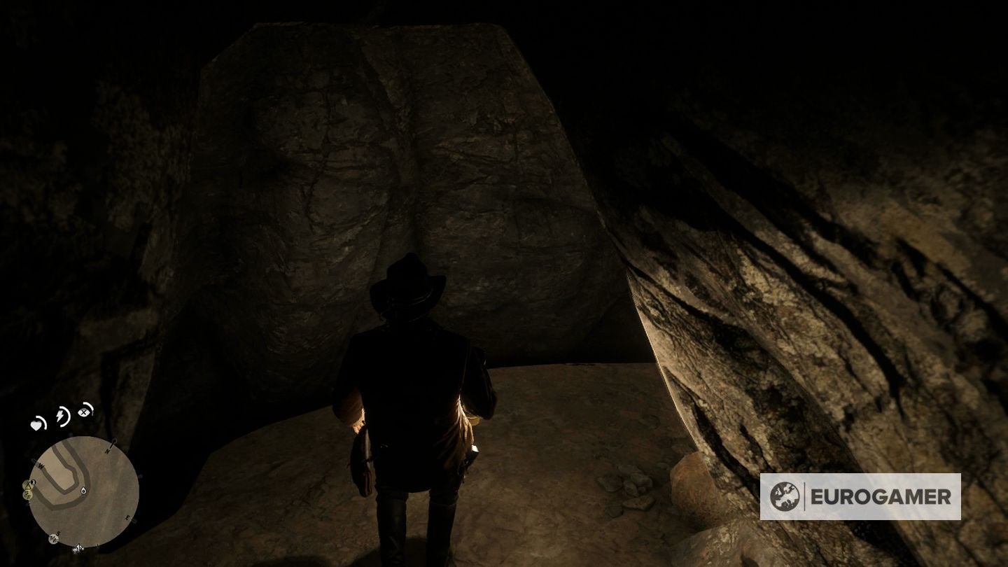 Eenmaal gevonden, maak je je paard vast aan een boom en ga je het water in. Zwem naar de waterval en ga er simpelweg door om toegang te krijgen tot de verborgen grot erachter.