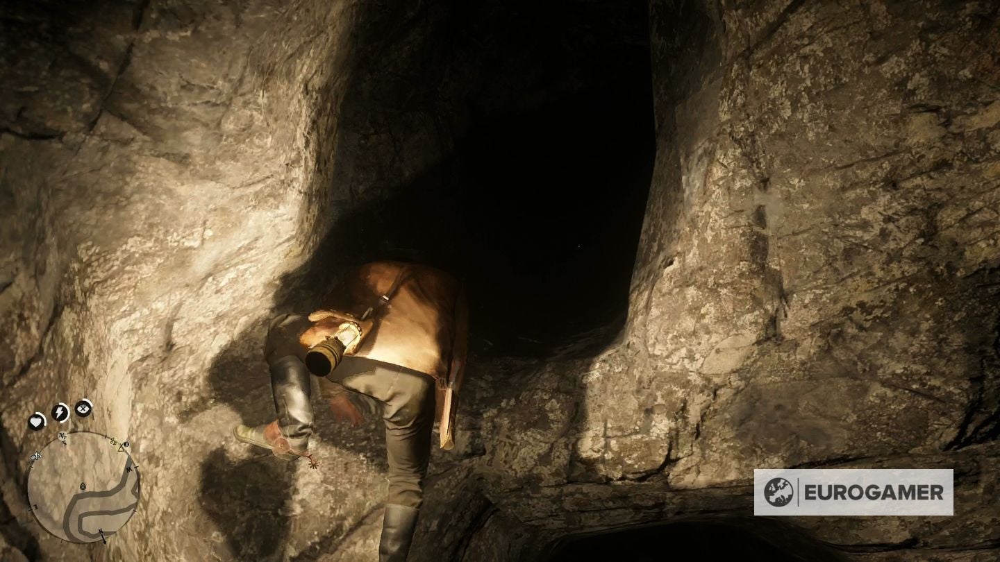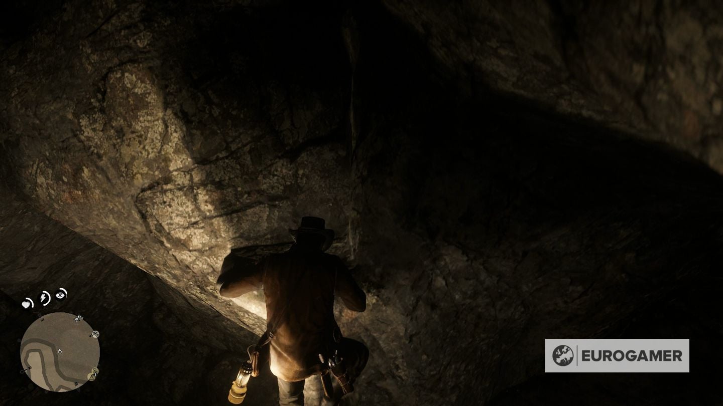 1. De grot ziet er op eerste zicht simpel uit maar wordt al snel moeilijk om te navigeren. Klim op de eerste richel en haal je lantaarn boven. Volg de gang.
