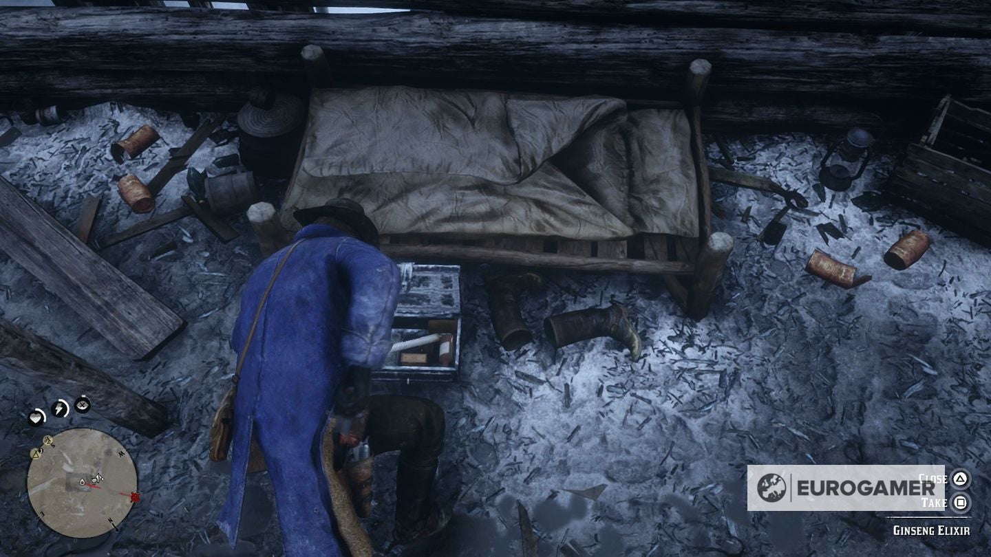 Om specifiek te zijn ligt de map in de hut aan de rand van het bevroren Cairn Lake, in het noordwesten van de map. Ga naar binnen, raap de Cigarette card op de tafel indien je ze spaart en zoek onder het bed naar de lockbox. Daarin zit de map. Je komt later in de game ook in deze hut terecht als je de Gunslinger missie met Flaco Hernandez
