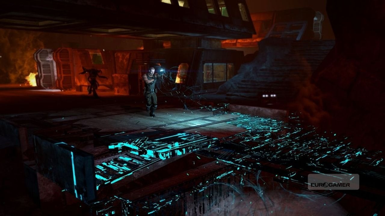 Wat volgt is een plot waarbij Darius alle inwoners van Mars op zijn kap krijgt omdat hij verantwoordelijk is voor het ontketenen van Armageddon. Noodgedwongen moet hij de aliens terug zien te drijven, maar gelukkig krijgt hij assisentie van enkele andere personages. Hoewel het verhaal als dertien in een dozijn klinkt merkten we tijdens onze korte speelsessie alvast dat Volition deze keer meer dan ooit een band wil scheppen tussen de speler en de digitale cast van deze nieuwe Red Faction. Darius staat constant in verbinding met zijn boordcomputer SAM die hem allerlei tips geeft, terwijl onze held via zijn intercom op regelmatige basis gesprekken voert met allerhande lotgenoten. We voorspellen nu al dat Armageddon geen prijzen in de wacht zal slepen voor het meest originele verhaal, maar het is sowieso een hele vooruitgang sinds het wat onpersoonlijke Guerilla.