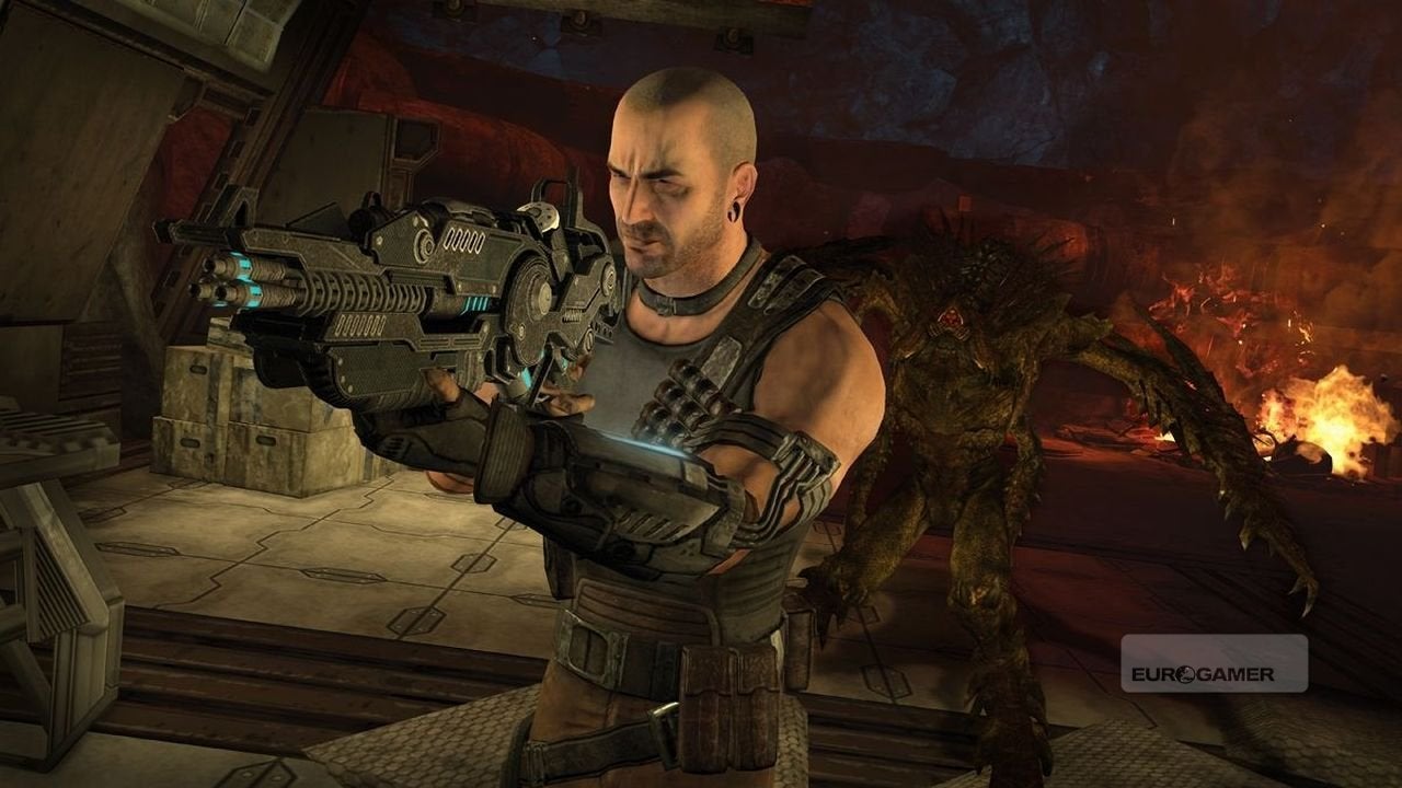 En laten we het eens over dat verhaal hebben. Jij neemt de rol aan van Darius Mason, een naam die waarschijnlijk wel een belletje doet rinkelen. Darius is namelijk de kleinzoon van Alec Mason, de held uit Red Faction: Guerilla. Vijftig jaar na de gebeurtenissen uit het voorgaande deel is de oppervlakte van Mars onleefbaar geworden en zit er niets anders op dan ondergronds de samenleving verder te zetten. Net als mollen is een van de voornaamste beroepen het uitmijnen van gangenstelsels geworden. Ook Darius doet dit, maar tijdens een expeditie ontkurkt hij perongeluk een eeuwenoude schuilplaats van de oorspronkelijke bewoners van Mars. En neen, het zijn geen lieve E.T.-achtige wezens, maar eerder bloeddorstige gedrochten die ervoor zorgen dat de door de mensheid gekoloniseerde planeet opeens heel wat minder aantrekkelijk gaat lijken.