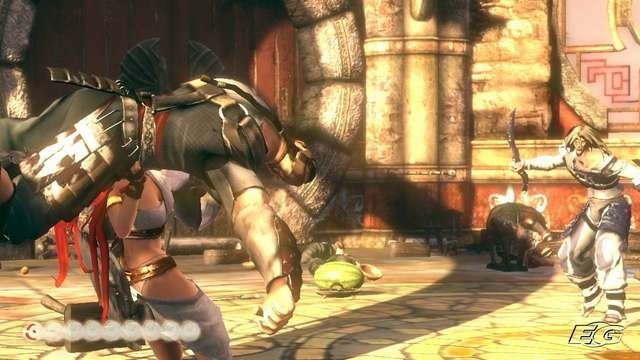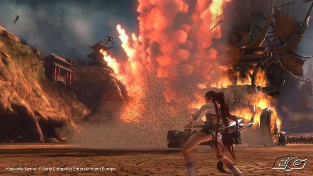 Dat mooie plaatje heeft echter ook een minder positieve kant: een regelmatig de dieperik induikende framerate. Sommige tussenfilmpjes laden erg traag in, terwijl de vloeiendheid van het spel tijdens gevechten soms ver zoek is. Toch gaat Heavenly Sword nooit onspeelbaar worden doordat aan de basis eigenlijk wat redelijk goede gameplay ligt. Ja, we weten dat Ninja Theory goed gekeken heeft naar de God of War-reeks, maar zeg nu zelf: welke game kopieert tegenwoordig eens niet eerder verschenen meesterwerken?