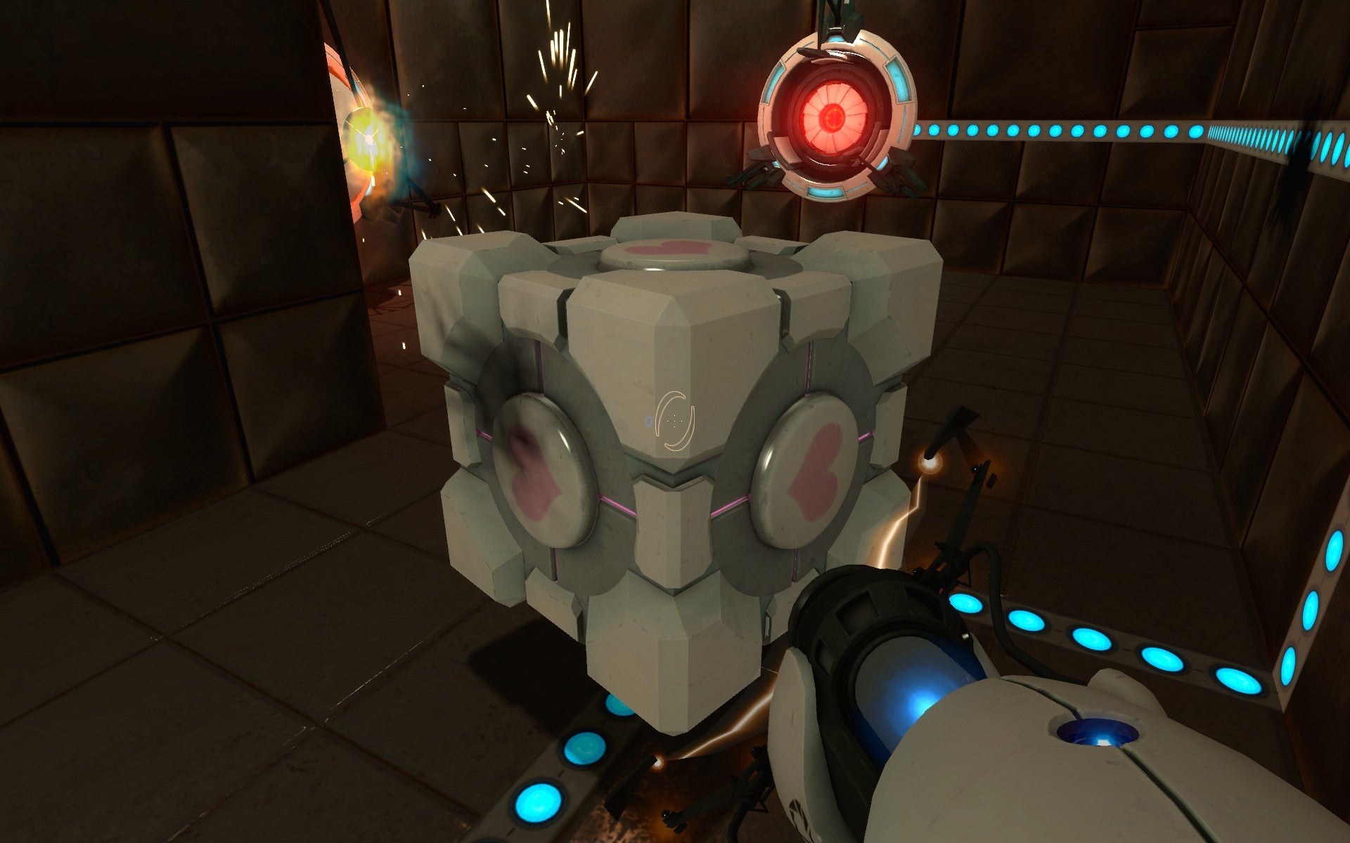 Wat Portal eigenlijk zo verdomd geniaal maakt, is de harmonie in de combinatie van al zijn elementen. Enerzijds de synesthesie van GLaDOS' humor met de icoontjes in elke testruimte, de nagelaten krabbels en polaroid foto's van de Compagnion Cube. Anderzijds het contrast van het mechanische met het menselijke, de witte testkamers met de grauwe gangen. Het zijn vaak de kleine dingen die een onvergelijkbare charme hebben. Zo kan je het internet niet op zonder ergens een Portal-referentie tegen te komen, of het nu een quote van GLaDOS is of een verwijzing naar de Compagnion Cube.