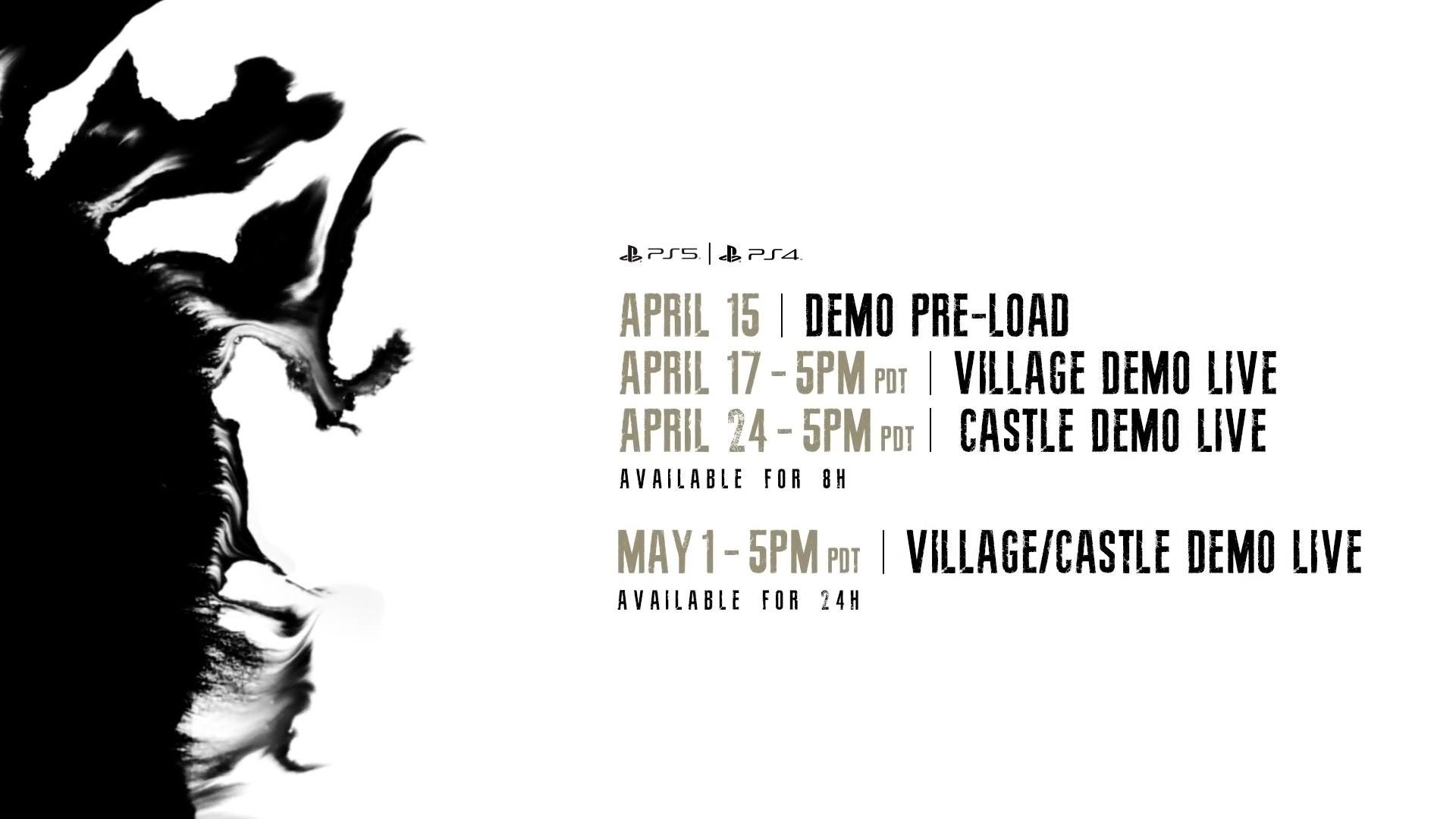 - PS4- en PS5-eigenaren krijgen vroegtijdig toegang tot de demo tijdens de twee voorafgaande weekenden van 17 en 24 april - waarbij de toegang tot respectievelijk het dorp en het kasteel over deze weekenden wordt gespreid.