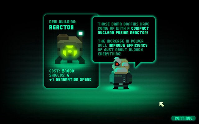 De levels duren gelukkig nooit langer dan een tweetal minuutjes en het volstaat in zo'n geval dan ook twee of drie levels te herspelen om het alsnog met dat krachtige wapen op te kunnen nemen tegen die specifieke Titan. De gigantische Titans - Titantitanen zo u wil - doen de moeilijkheidsgraad ook geen goed. In het laatste level op iedere planeet word je niet alleen uit alle richtingen overspoeld door tegenstanders, maar verschijnen er bovendien nog één of meerdere huizenhoge rakkers die met weinig moeite een knap opgezette defensieve linie met de grond gelijk maken. Gelukkig wordt dit enigszins opgevangen door de power-ups die nu en dan op het slagveld verschijnen en je op kan sparen tot de nood het hoogst is. Zo kan je bijvoorbeeld je gebouwen voor korte tijd met een schild beschermen, de vijanden even bevriezen of hen met een reuzelaserstraal terugdringen. Heb je die allemaal reeds opgesoupeerd in de voorgaande levels en staat ook je bankrekening gevaarlijk laag, dan wordt zo'n level tot een goed einde brengen schier onmogelijk.