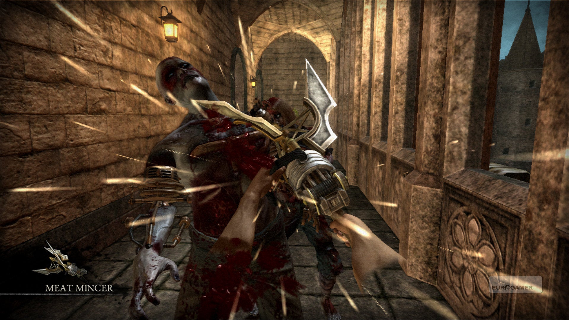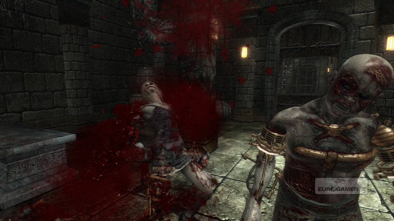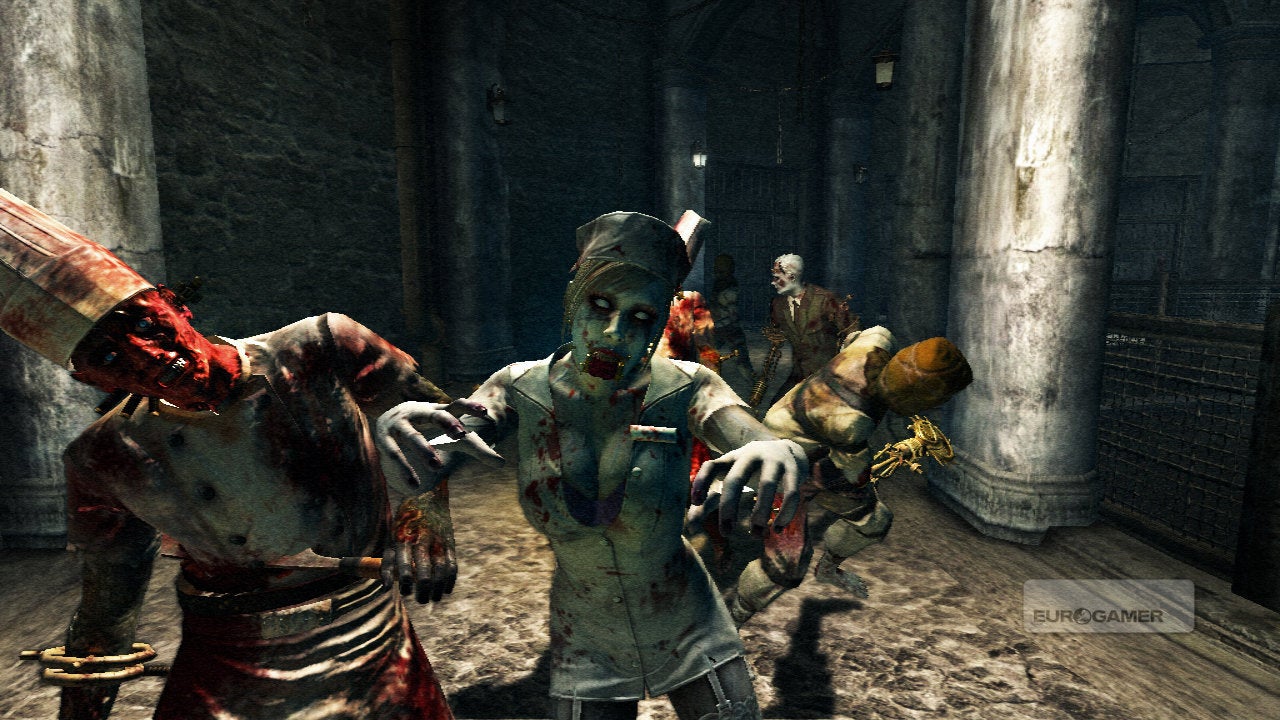 Rise of Nightmares gaat van start met een proloog die zo weggelopen zou kunnen zijn uit films als Hostel of Saw. Een onbekend personage ligt om nog onbekende redenen in een cel weg te rotten, maar ontwaakt opeens. Voor zijn neus ligt een al even onbekende dame, die wanneer ze wakker schiet meteen begint te gillen dat ze samen met jou wil ontsnappen. Begrijpelijk, want in de duistere gevangenis lopen zombies rond die hun honger willen stillen met je eigen ledematen. Op het nippertje weet je te ontsnappen...of zo lijkt het toch, want nét voordat je de uitgang bereikt transformeren twee naar elkaar schuivende muren je tot een menselijke pannenkoek. Dit spel weet alvast aan één van mijn ergste nachtmerries te beantwoorden. Mooi zo!