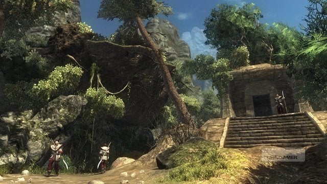 Zo begint ook Risen. De openingsronde verloopt in een langgerekte verwijzing, bewust of onbewust, naar de Gothic reeks. De protagonist, alleen bekend als de ‘Castaway’, spoelt aan op een eiland. Hier zijn vreemde Meso-Amerikaanse tempels uit de grond gerezen, monsters en mist spuwend. Een corrupte inquisitieploeg is op het eiland aangekomen om het mysterie van de tempels op te lossen en dwingt de minder godvrezende bevolking naar de moerassen. De Convocatie, een groep magiërs, blijft neutraal. Dit zijn de groepen waarbij de Castaway zich moet aansluiten: Inquisitie, Bandieten, Magiërs. Of door de lens van Gothic 2: Paladins, Rebellen, Magiërs. Het is een bewuste verwijzing dus, en tijdens het spelen blijkt het meer en meer een brutale en gewaagde zet. Met Risen kluistert Piranha Bytes zich zo onbeschaamd vast aan de Gothic reeks dat ik er zeker van ben dat hun harten gebroken zijn in 2007. Voor iedereen die twijfelde over Gothic 4, die dacht dat de echte er nooit zou komen: hier is hij, en vielen Dank, Piranha’s.
