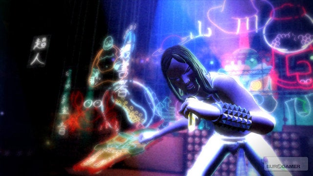 Het meest afschrikwekkende onderdeel van Rock Band -voor vrienden en familie in ieder geval- is het zanggedeelte. Nu hoort een rockster geen stem van een nachtegaaltje te hebben, maar het is op zijn minst handig om een toon vast te kunnen houden tijdens die lange uithalen. Gelukkig heeft onze zangcarrière al wat training gekregen in Singstar, dus we konden goed overweg met de microfoon die we bij Rock Band geleverd kregen.
