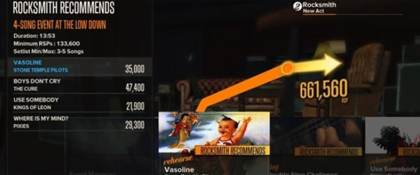 Door steeds beter te worden in liedjes speel je optredens vrij die het liedje waar je goed in bent bevatten. De andere liedjes op de setlist kan je zelf kiezen en zijn aangepast aan de vorderingen die je er reeds mee hebt gemaakt, dus je kunt altijd optredens spelen ook al heb je bepaalde liedjes nog niet helemaal onder de knie. Dit is een groot voordeel ten opzichte van Rock Band 3, waar je per optreden een moeilijkheidsgraad moet kiezen die dan voor alle liedjes geldt. Als je goed bezig bent applaudisseert het publiek en mag je encore nummertjes spelen. De allerlaatste stap in het leren van een bepaald liedje is om het volledig van buiten te spelen. Pas dan heb je het helemaal onder de knie en ben je klaar voor het echte podium. Het spel raadt je steeds aan welke liedjes of technieken je het best kunt leren en welke optredens je het best kunt doen, dus ook daar hoef je je geen zorgen over te maken.