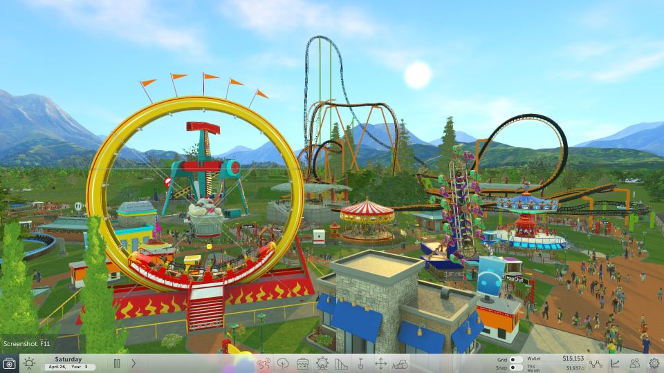 De attracties en tools waarmee je in deze voorlopige versie aan de slag kunt, lijken op het eerste zicht niet gering: 33 vlakke attracties, tien soorten rollercoasters die je zelf kunt ontwerpen, verschillende winkels in diverse stijlen en een heleboel planten en voorwerpen om je omgeving op te smukken. Genoeg bouwmateriaal om je een tijdje zoet te houden.