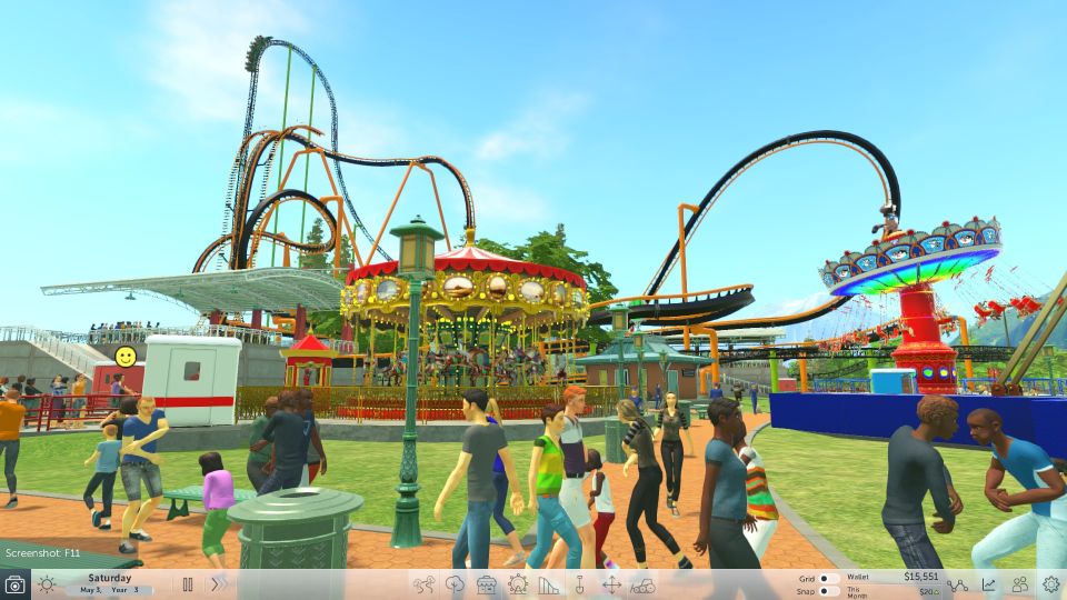 De tools om een rollercoaster te bouwen zijn daarentegen wel handig, eenmaal je ze begrijpt. Met slechts de muis en verschillende functies van de shift-toets pas je de hoogte, hoek, buiging en helling van je track aan. Achteraf voeg je gemakkelijk boosters of remmen toe. Het is aanvankelijk niet eenvoudig om het ontwerp dat in je hoofd zit precies naar de game te vertalen, maar mits wat oefening schud je toch iets spectaculairs uit je mouw. Dan heb je al snel een mastodont van een houten achtbaan die je meermaals de lucht inwerpt of een zwevende coaster die enkele keren rond zijn as draait. Na de testfase zie je ook exact welke stukken je bezoekers wel of niet leuk vinden. Al is het momenteel niet gemakkelijk om een spectaculaire rit te ontwerpen, zonder dat iedereen kotsmisselijk naar buiten komt en uiteindelijk zijn maaginhoud verliest.