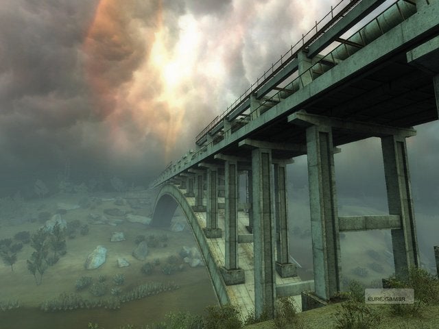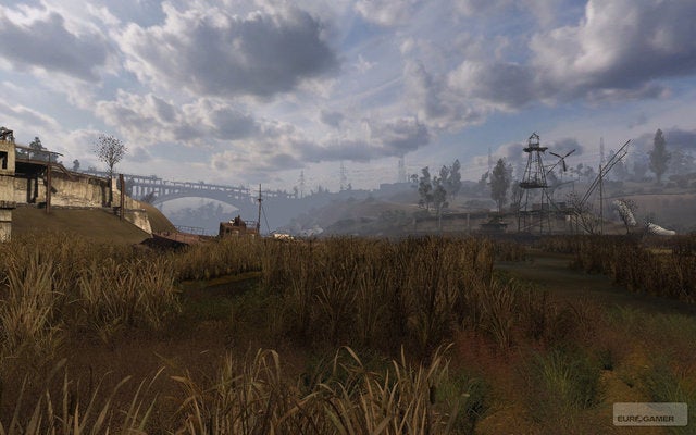 Met de brug achter me kom ik bij een pakhuis. Mijn verrekijker bevestigt mijn vermoedens: tientallen vijandige Stalkers patrouilleren over een exoskelet van metalen wandelwegen. Omdat ik niet nog meer tijd wil verliezen, en omdat er een officieuze woordlimiet op deze recensies staat, is het met een afbrokkelende muur tussen mij en de uitkijkposten dat ik de oever volg richting de crash site.