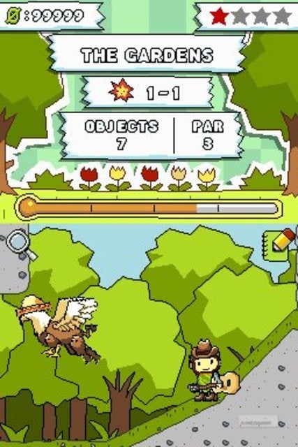 Er zijn twee soorten levels in Scribblenauts. Of je moet een vooropgestelde opdracht uitvoeren, of je moet simpelweg een ster te pakken krijgen die ergens in de omgeving te vinden is. In beide gevallen is je werkwijze volledig vrij, al zijn er enkele resticties aanwezig. Zo kun je niet eindeloos veel objecten tegelijk tevoorschijn toveren. Meer zelfs, hoe minder dingen je oproept om het level tot een goed einde te brengen, hoe hoger je score zal zijn en hoe meer 'ollars' je krijgt. Dat laatste is de valuta binnen Scribblenauts waarmee je vooral nieuwe omgevingen zult kopen waarbinnen telkens nieuwe raadsels te vinden zullen zijn.