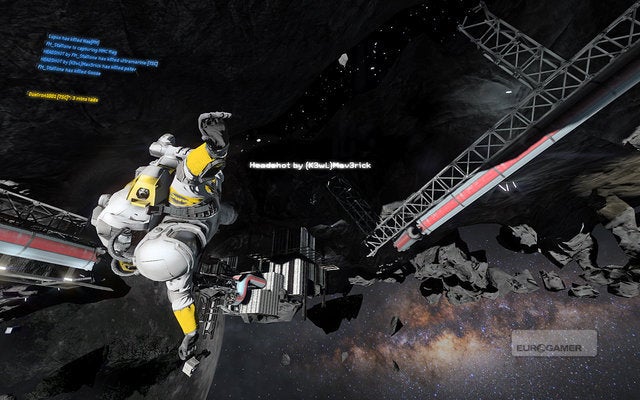 Als vrij astronaut met jetpack zijn alle mogelijke oriëntaties in de driedimensionale ruimte voor je open. Vlieg naar boven, zweef een beetje naar links, draai om alle beschikbare assen zodat je eigenlijk naar rechts en naar beneden zweeft. Het klinkt als een gimmick, maar verandert alles. Het andere team kan van alle kanten komen: vanachter die losse maansteen – nee , vanachter díé - vanop de onderkant van een asteroïde, jouw beneden hun boven. Hij kan opdagen vanachter de zon, het aanzicht van de hele gasbol een blinde hoek. Shooter veteranen moeten hun ideeën over tactiek uit het raam gooien – het spaceraam. Het is een dappere, nieuwe wereld daarbuiten.