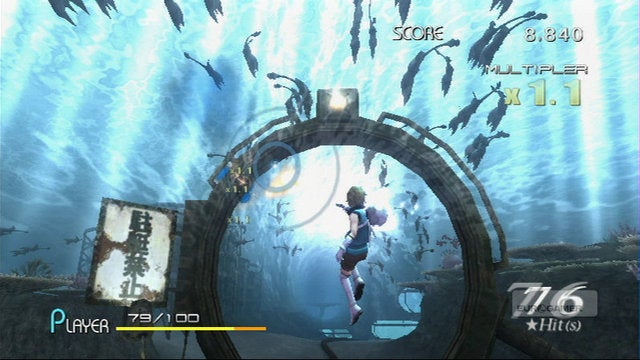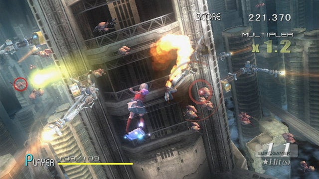 Maar terug naar de besturing. Je kan manueel schieten of door middel van een eenvoudig lock-on-systeem. Bij de tweede optie wordt de schade van je schoten echter beperkt, zodat je moet kiezen tussen accuratesse of kracht. De vijanden kunnen dichter tot jou komen en dan moet je ze wegslaan met een close-quarter melee attack. Hetzelfde geldt voor de objecten die naar jou gegooid worden en die je op deze manier return to sender stuurt.