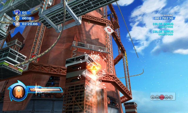 Wat ik wel moet toegeven is dat de level-structuur niet altijd even uitgebreid is als in de DS-versie. Sommige gebieden voelen iets te kort aan en de gelaagdheid uit vorige titels is soms wat zoek. Wat ik persoonlijk als oorzaak (of gevolg?) van deze verandering zie, is de aanpassing van de mechaniek. Aangezien verhaal, setting en zelfs de werking van de power-up hetzelfde is als bij de DS, lijkt het logisch dat het verloop qua gameplay in dezelfde stijl zou liggen. Niets is minder waar. Sonic staat bekend als een actiefranchise die tempo en feilloosheid hoog in het vaandel houdt. Sonic Colours Wii is een platform game, met snelheidssegmenten. In het begin valt het misschien niet zo hard op, maar de gewaarwording is onvermijdelijk. Een leven verliezen gebeurt niet langer aan de hand van een vijand of een stel scherpe pinnen. Nee, de bodemloze put is je nemesis. Je moet knoppen indrukken om poorten te openen en de Wisps gebruiken om kleine puzzels en hindernissen te doorlopen. Het grootste gevaar hierbij is de aanpak: als je Sonic Colours speelt zoals elke andere klassieke Sonic, dan geraak je even ver als de platgereden egels langs de snelwegen. In platformers zijn haast en spoed zelden goed - tenminste, wanneer er een afgrond onder je pootjes huist. Mensen die niet houden van 'sterfte door afgrond'-scenario's zijn bij deze gewaarschuwd.