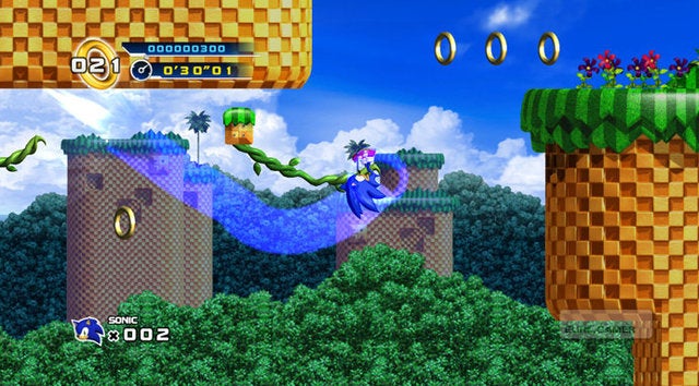Genoeg gezeverd, jullie wilden een Sonic preview en ik zit hier gewoon jullie tijd te verdoen. Welnu, beginnen bij het begin, hoe ziet de snelheidsmaniak er uit in zijn langverwachte vierde deel? Wel, hij stelt het goed, een stuk voluptueuzer dan Sonic 3, dat is te zeggen: er is een dimensietje bijgekomen. Het geheel van de game zit in een 2.5D-fase. De volledige voorgrond en alle personages zijn uitgewerkt in drie dimensies, terwijl je bewegingsvrijheid een Z-as ontbreekt.