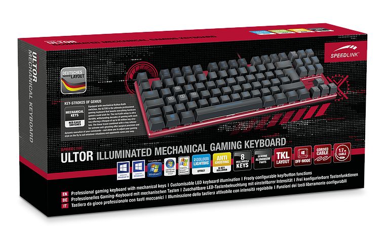 Mechanische toetsenborden die speciaal voor gamers zijn ontworpen zijn niets nieuw. Bedrijven zoals Logitech, Razer en SteelSeries bieden al enkele jaren gespecialiseerde keyboards aan. Met de Speedlink Ultor wil het Duitse bedrijf een compacter en betaalbaar alternatief aanbieden.