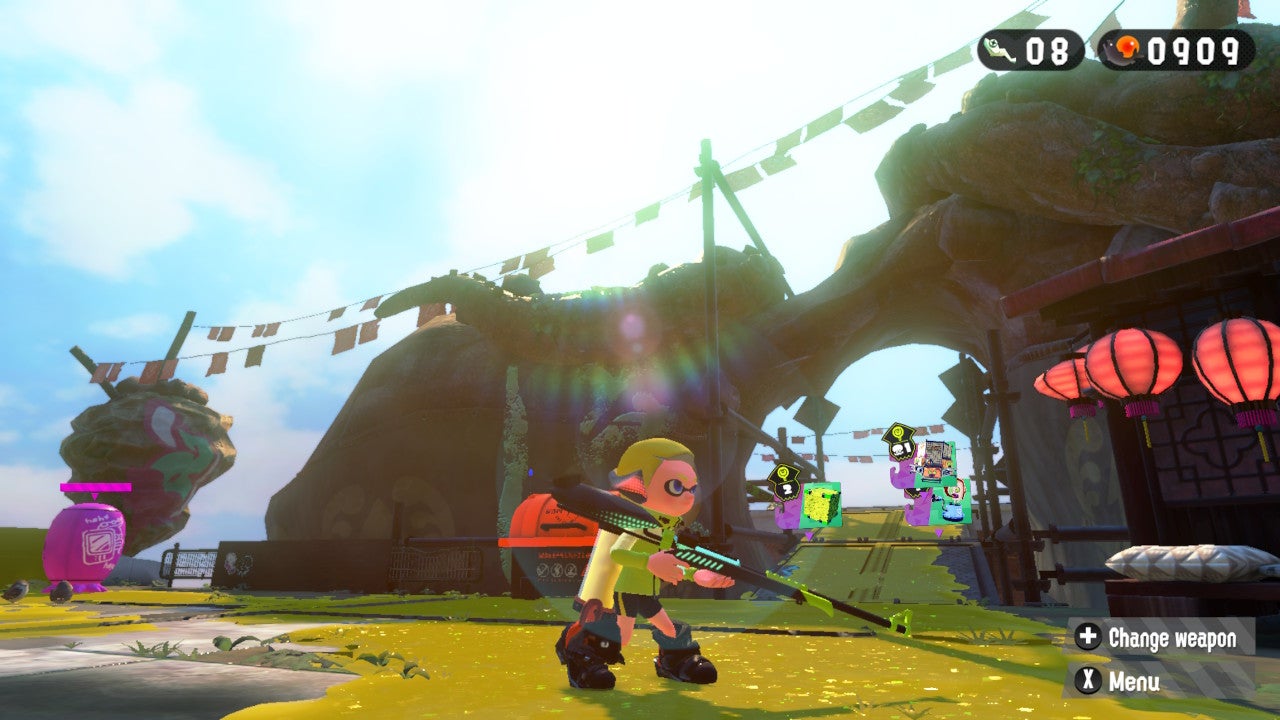 Sheldon heeft bovendien zijn arsenaal uitgebreid. Zo is er de Brella, een paraplu die tegen wapenvuur beschermt, afgevuurd kan worden en een inktspoor achterlaat. Er zijn ook nieuwe subwapens zoals de Curling Bomb, die van de muren afketst en bij ontploffing een flinke dosis inkt achterlaat. Sommige wapens van Splatoon 1 hebbeneen herbalancering ondergaan. De standaard shooter heeft bijvoorbeeld een nieuwe special, waarmee niet langer Burst Bombs worden gelanceerd, maar je zelf met een sprong een inktvlek maakt. De singleplayer is een goede plek om met de veranderingen te spelen, maar de daadwerkelijke impact zal pas in de multiplayer echt te merken zijn.