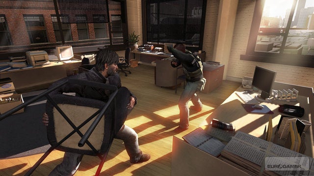 De feature waar het indertijd allemaal om draaide, het ‘opgaan in de massa’, zit er nog steeds in. Sam Fischer opereert nu niet enkel meer in het duister en dus werden hier ook wat aanpassingen gemaakt. Naast schaduwen kun je je nu ook in het volk verstoppen. Je kunt mensen omver duwen om een afleiding te creëren of je wandelt door de mensenmassa om onopgemerkt een wachtpost te passeren en andere manieren die we ondertussen al in Assassin’s Creed 1 en 2 gedaan hebben. Belangrijker is de hogere graad van interactiviteit. Je kunt een kast voor de deur schuiven om jezelf meer tijd te geven een computer te onderzoeken, je kan expres papieren over de grond strooien om bewakers af te leiden maar je kunt ook achter jezelf opruimen om geen aandacht te wekken. In Splinter Cell: Conviction gaat het er volgens de makers om dat je een enorm groot arsenaal aan mogelijkheden hebt om een bepaalde missie uit te voeren. Deze missies vinden telkens plaats in een eigen ‘open world’ voor henzelf, waarin de speler de situatie telkens goed moet inschatten, zijn plan moet uitvoeren en dan stilletjes verdwijnen. We zijn benieuwd hoe extensief die mogelijkheden precies zullen zijn.