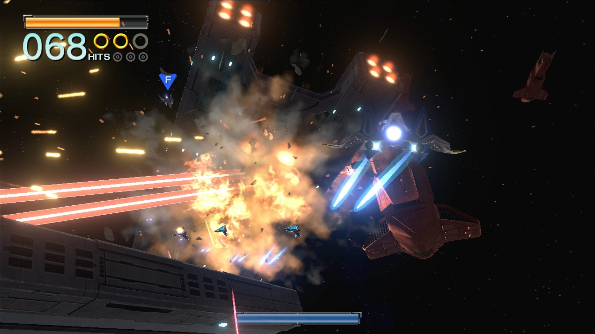 Tijdens actiescènes wisselt Star Fox Zero voortdurend tussen de typische on rails-secties en de All-Range Mode waarin je vrij rondvliegt. Hier biedt de GamePad-besturing unieke mogelijkheden. Vliegen en schieten staan nu los van elkaar en ontwikkelaars Nintendo en PlatinumGames spelen hier voortdurend op in. Je verhoogde wendbaarheid wordt door een groot aantal vijanden op het scherm uitgedaagd. Die ontwijk je het beste langs de ene kant, terwijl je met de GamePad de andere kant op richt. Bazen schieten lasers uit hun zwakke punten, waardoor een rechttoe rechtane benadering dodelijk is. Sommige vijanden zijn enkel langs boven kwetsbaar en vereisen nauwkeurig gebruik van de cockpitview op je GamePad.