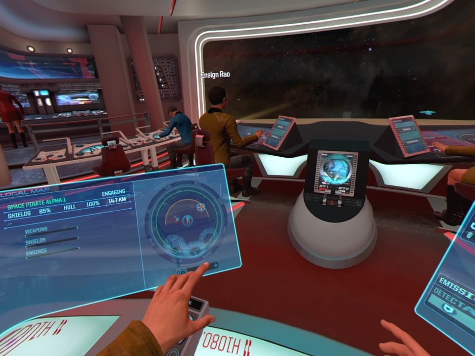 Virtual reality is een perfect medium om de brug van een sterrenschip tot leven te brengen. Hoewel soortgelijke games zoals Artemis en Spaceteam het concept al eerder uitwerkten, zorgt de immersie van VR voor een extra laag betrokkenheid. Je zit letterlijk achter je besturingspaneel terwijl de sfeervolle bliepjes over de brug klinken. Achterin zijn twee technici met een analyse van de systemen bezig, terwijl de oneindigheid van de ruimte voor je uitstrekt. Je kijkt de bemanning aan terwijl je tactieken doorgeeft, om vervolgens met een bulderende "Engage!" de U.S.S. Aegis stoutmoedig te laten gaan waar nog nooit iemand is geweest. Er is simpelweg niets aan te merken op de immersie van Star Trek Bridge Crew.
